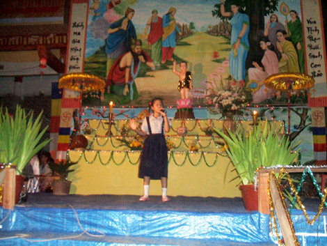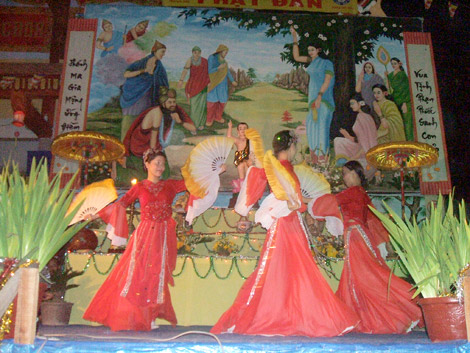 Tiếp nối chương trình là phần biểu diễn văn nghệ. Các đoàn sinh Chùa Từ Tân cũng đã góp phần làm cho không khí văn nghệ thêm sôi động bằng những lời ca và điệu múa mang đầy phong cách Phật giáo.