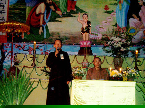 Tại đây, sau lời phát biểu dành cho các vị quan chức địa phương, phát bằng khen công đức cho các vị chư tôn túc và phật tử và thực hiện nghi lễ truyền thống. Là phần giảng pháp của thượng toạ Thích Viên Giác. Mở đầu là ba hồi chuông trống bát nhã, tiếp đến là phần giảng pháp với chủ đề “ Cảm nhận về ngày đản sinh”. Trong chủ đề này, Thượng toạ đã đặt ra câu hỏi và giải thích cho những vị Phật tử và đồng bào nơi đây hiểu rõ về ý nghĩa của những con số trong PL 2551.