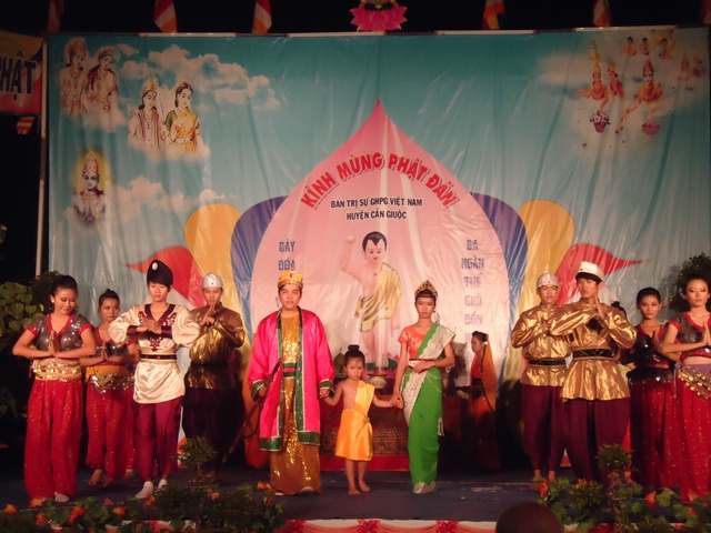 Thầy trụ trì quyết định vẫn tiếp tục diễu hành, Quý Phật tử đều đồng tình. Những chiếc áo mưa được mặc, những chiếc ô được che. Đội hình diễu hành vẫn giữ như ban đầu;Đầu tiên là đội xe hoa của những em nhỏ Hồng Hà Nhi trong chiếc xe hoa em bé được thiết kế tôn tượng Đức Sơ Sinh, kế là chiếc xe hoa Phật thành đạo của những chú bé Mục Đồng, kế tiếp là chiếc xe hoa trái đất- bồ câu trắng với ý nghĩa đạo Phật mang hạnh phúc và hòa bình đến với trái đất này của các em đoàn sinh oanh vũ. Một mô hình đức Phật nhập Niết bàn bên hai cây Sa la được thiết kế trên chiếc xe rùa, theo sau là một mô hình sống động hơn: Vua Tịnh Phạn, Hoàng Hậu Ma ya, những tỳ nữ, Thái tử Tất Đạt Đa và công chúa Da Du Đà La, nối tiếp là Chư Ni hạ trường Hòa Bình.