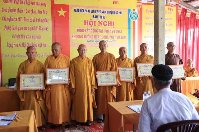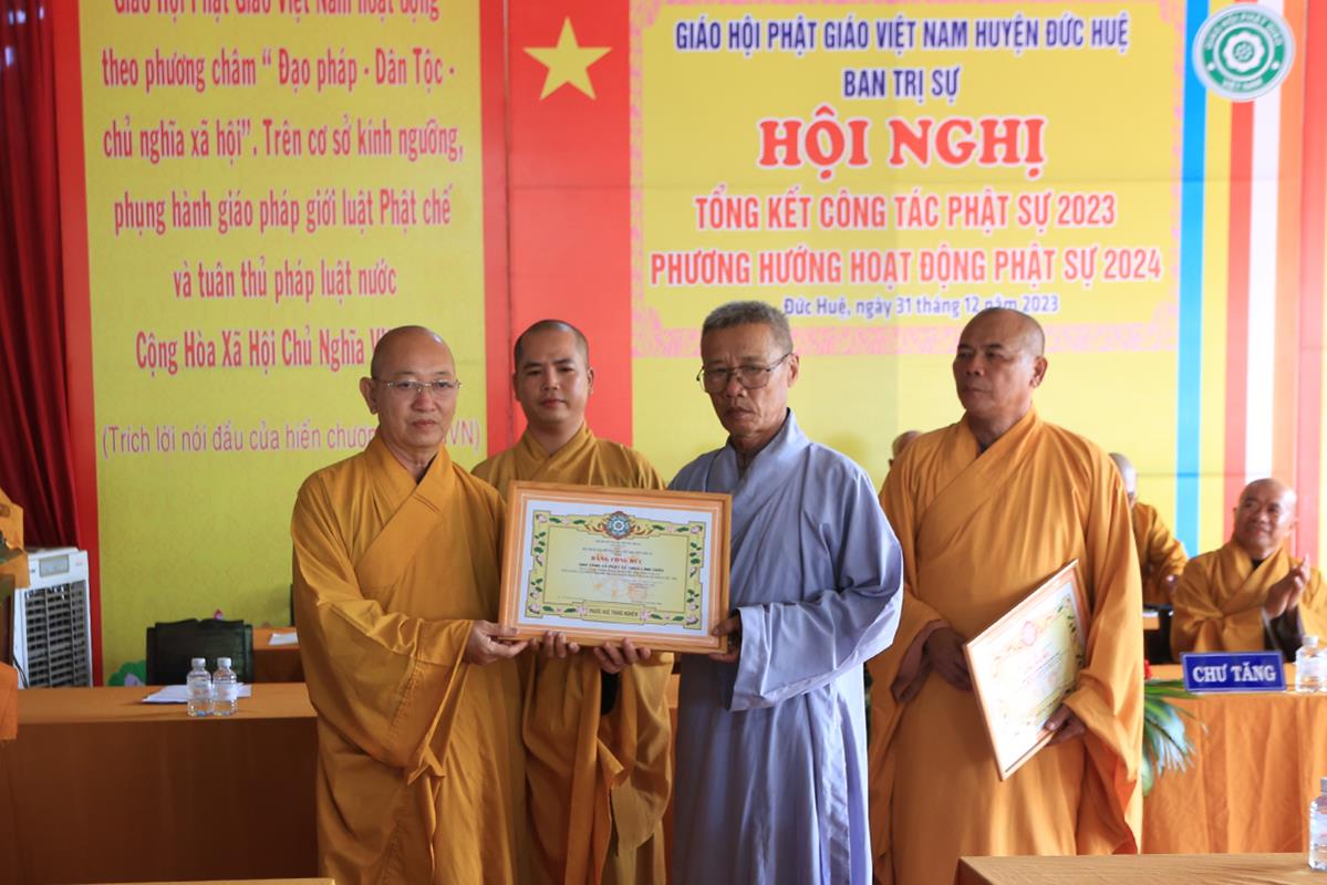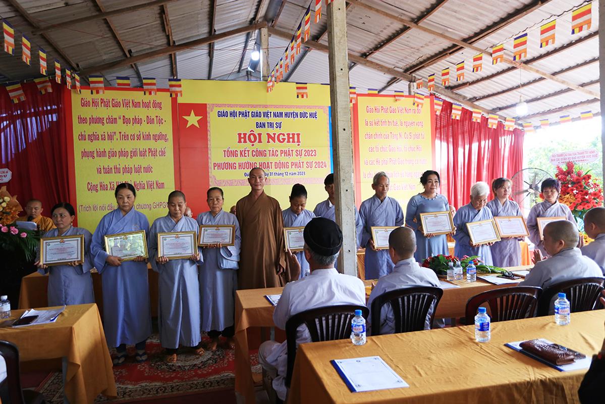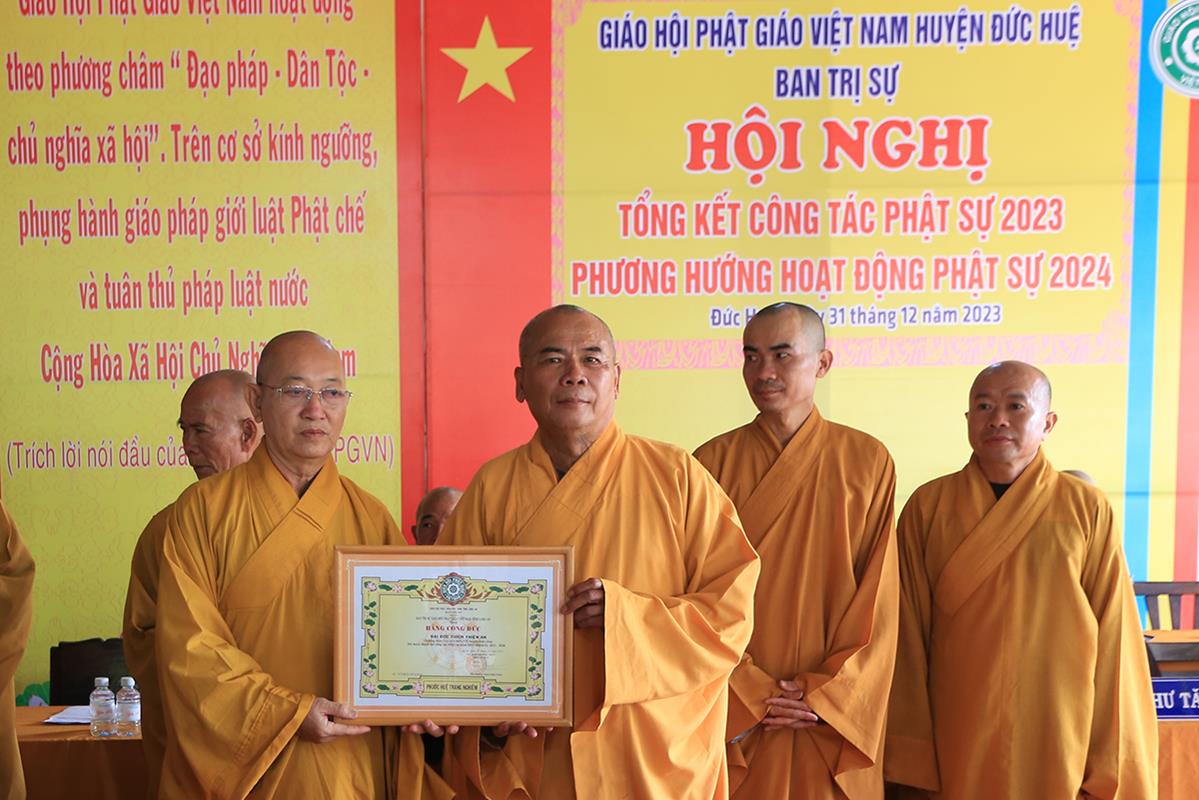 Ghi nhận những đóng góp của các tự viện và Tăng Ni huyện nhà, Ban Trị sự GHPGVN tỉnh Long An, Ban Trị sự GHPGVN huyện Đức Huệ đã tặng Bằng Tuyên Dương Công Đức cho các cá nhân và tập thể có đóng góp tích cực cho sự thành tựu của Phật sự tại huyện Đức Huệ.