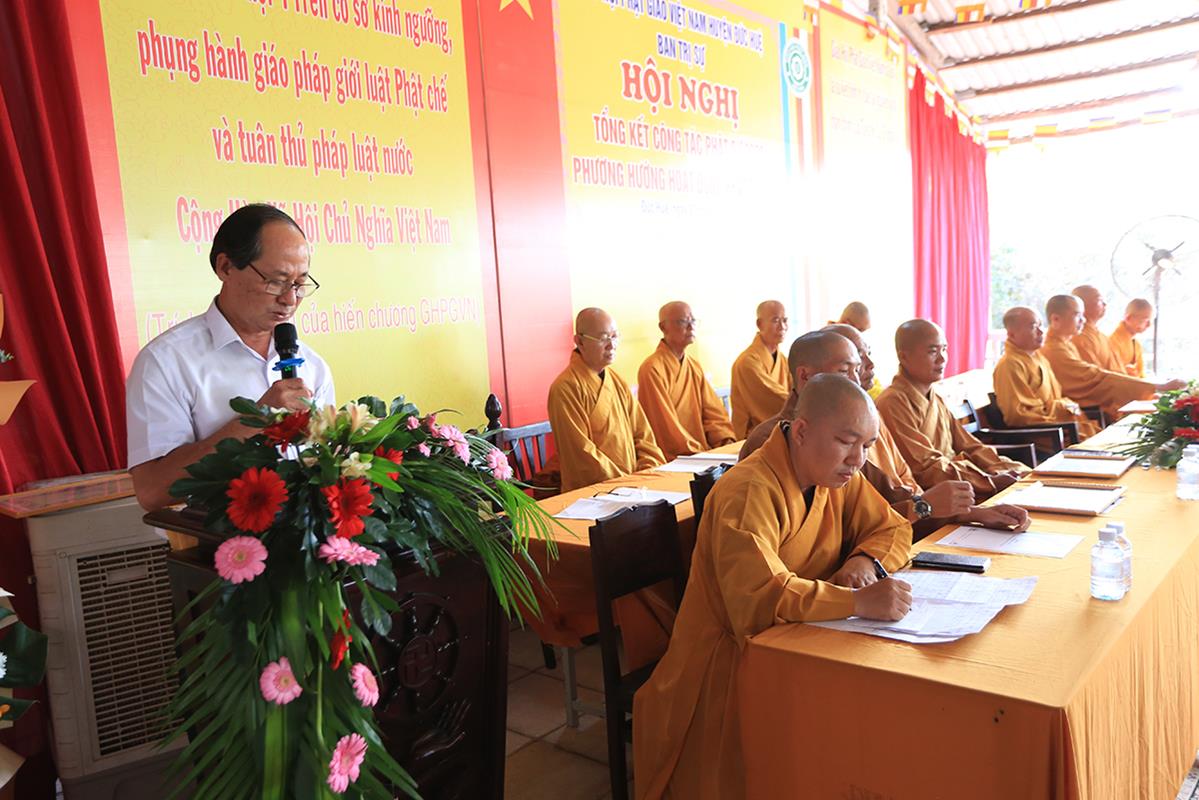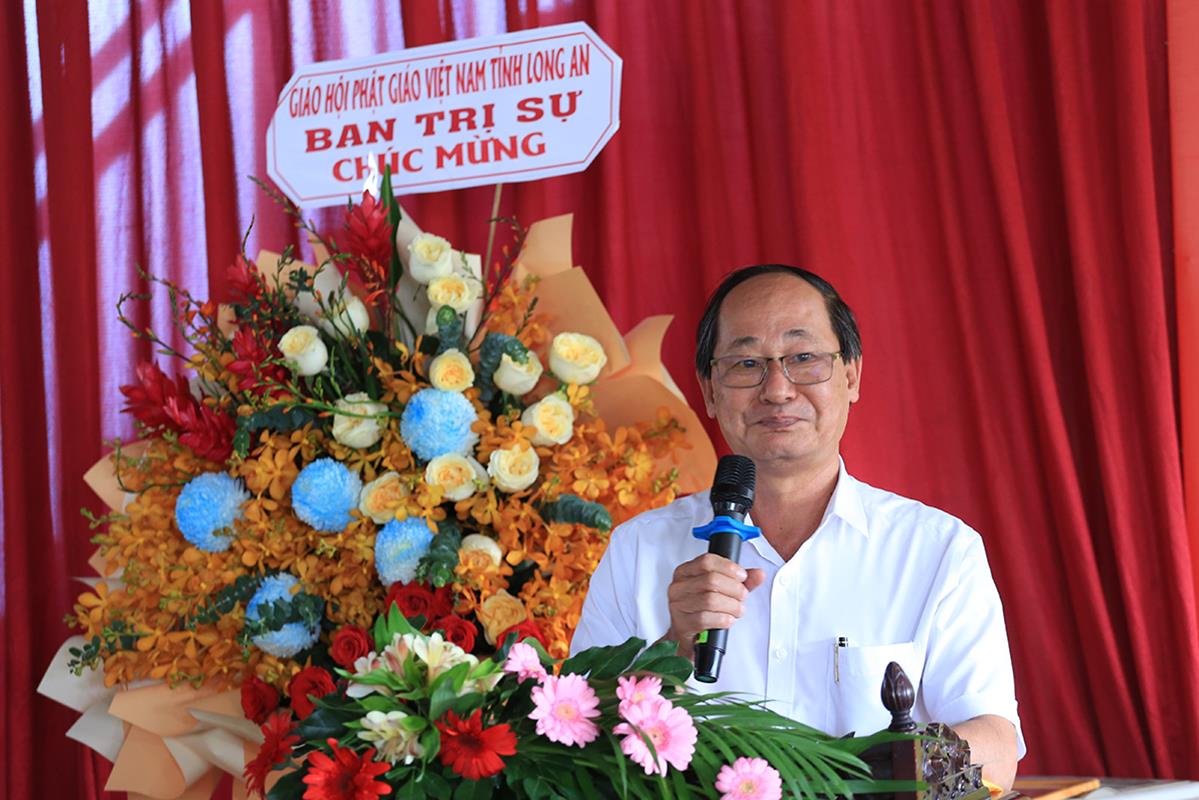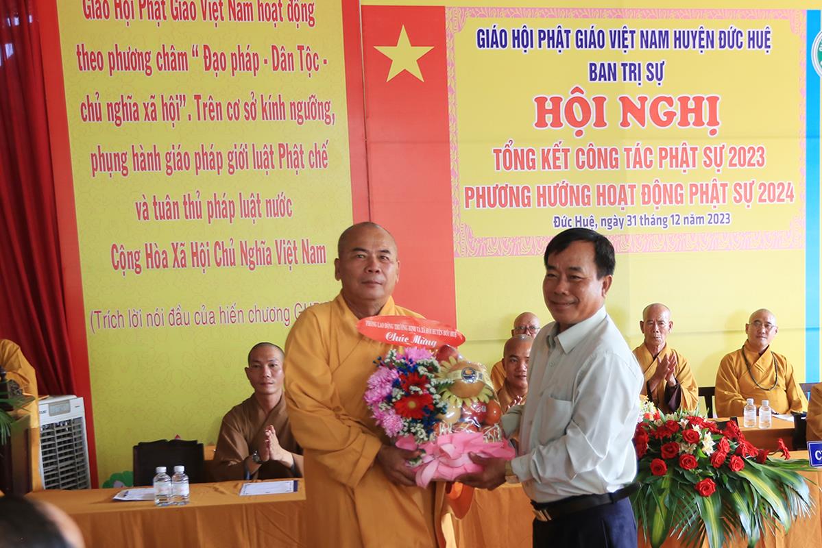 Đại diện các cấp lãnh đạo chính quyền, ông Lê Văn Nên có lời phát biểu tại buổi lễ. Ông nhắc lại một số chủ trương, chính sách của nhà nước đối với công tác tôn giáo và có lời khen ngợi các tôn giáo luôn chấp hành tốt pháp luật. Ông ghi nhận những đóng góp tích cực trong năm qua của BTS GHPGVN huyện Đức Huệ đã cùng với địa phương trong các hoạt động, nhất là công tác an sinh xã hội.