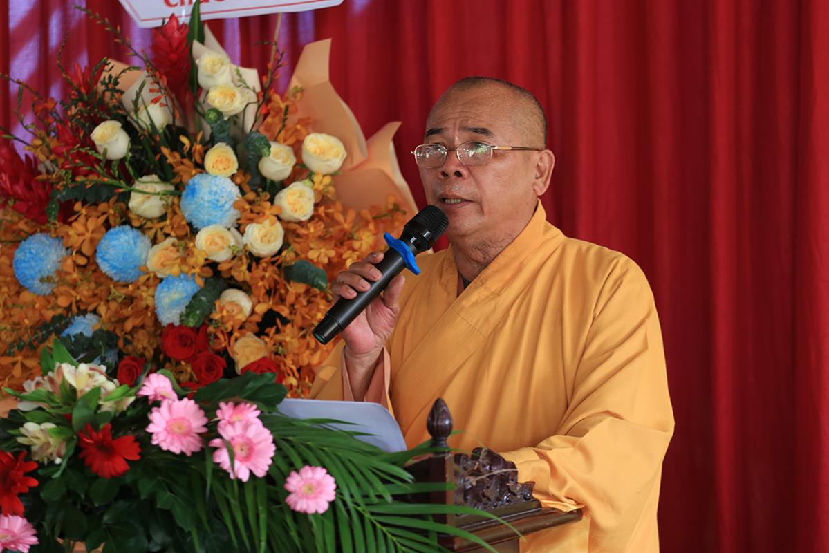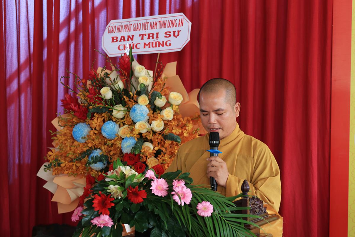 Thay mặt Ban Thường trực BTS GHPGVN tỉnh Long An, TT. Thích Quảng Tâm có lời phát biểu tại hội nghị.