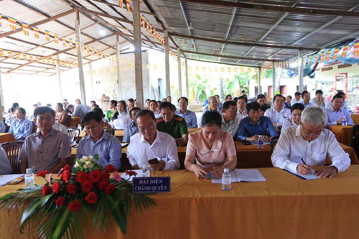 Về phía lãnh đạo chính quyền có: ông Nguyễn Văn Mưng – Trưởng ban Tôn giáo Sở Nội vụ tỉnh Long An; Ông Nguyễn Thanh Sơn – Phó ban Dân tộc Tôn giáo Phòng trào UB MTTQVN tỉnh; Ông Nguyễn Văn Tiển – Trưởng phòng PA02 Công an tỉnh; ông Võ Văn Á – UV BTV Huyện ủy, Chủ tịch UB MTTQVN huyện Đức Huệ; Ông Lê Văn Nên – Phó chủ tịch UBND huyện; cùng đại diện các cấp lãnh đạo chính quyền tỉnh Long An, huyện Đức Huệ, các xã, thị trấn trực thuộc huyện Đức Huệ tham dự.