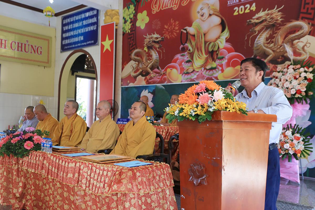 Về phía chính quyền: ông Nguyễn Thành Nhân – Phó Chủ tịch UBND xã Bến Lức phát biểu. Ông gửi lời chúc mừng sức khỏe đến chư tôn Đức trước thềm năm mới giáp Thìn 2024.