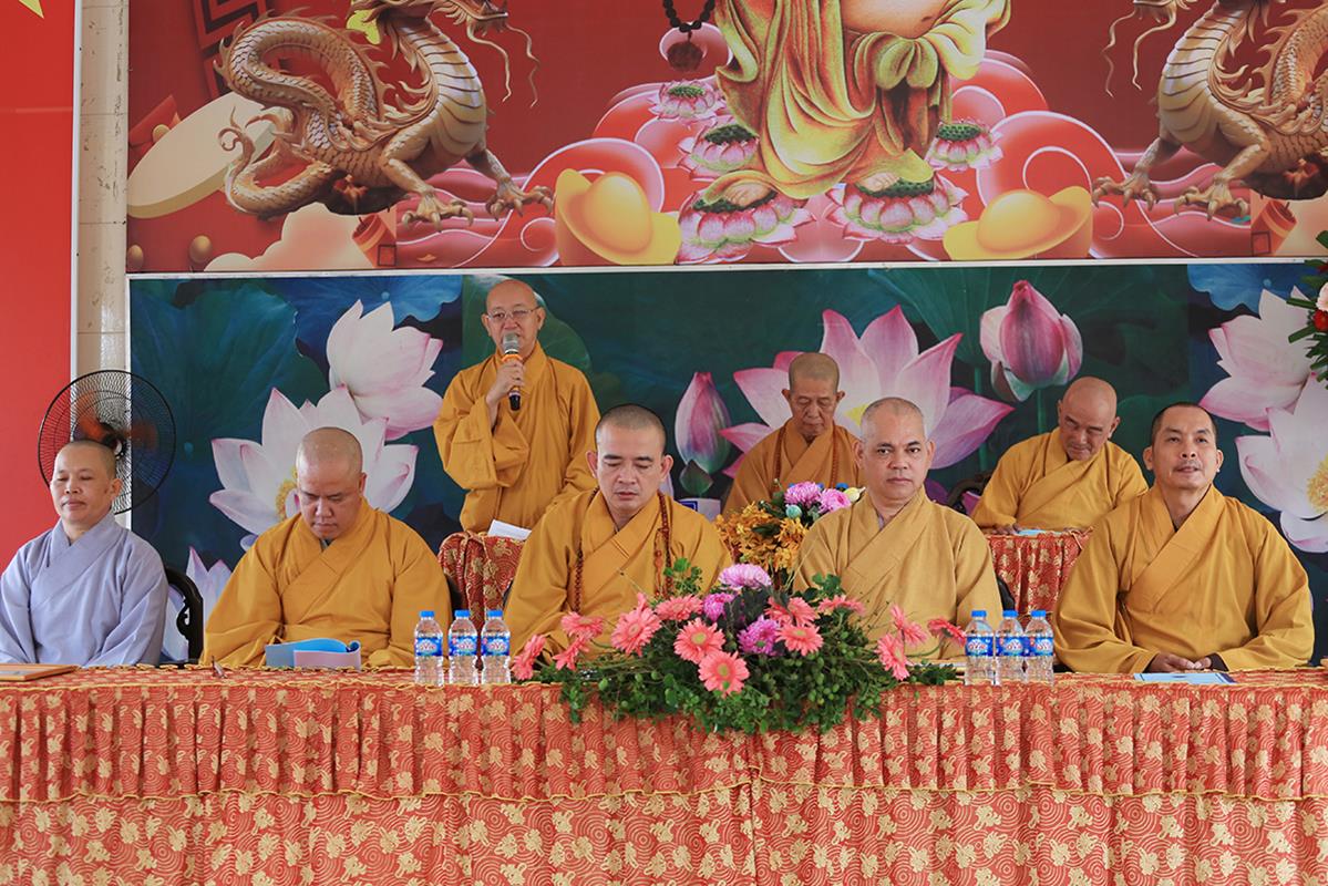 Tại buổi lễ Thượng tọa Thích Quảng Tâm đã có lời phát biểu. Thượng tọa tán thán và ghi nhận thành tích tốt đẹp mà Phật giáo huyện nhà đã đạt được trong năm qua, đặc biệt về an sinh xã hội, từ thiện,…nêu cao tinh thần từ bi và trí huệ của đạo Phật. Bên cạnh đó Thượng tọa phổ biến về việc thành lập Ban quản trị tự viên theo hiến chương mới của GHPGVN được áp dụng trong nhiệm kỳ mới, kêu gọi các tự việc trong huyện hoàn thành hồ sơ bổ nhiệm trụ trì các tự viện chưa hoàn thiện về thủ tục hành chính giáo hội, để chuẩn bị tốt cho việc thành lập Ban Quản Trị Tự viện sắp đến.