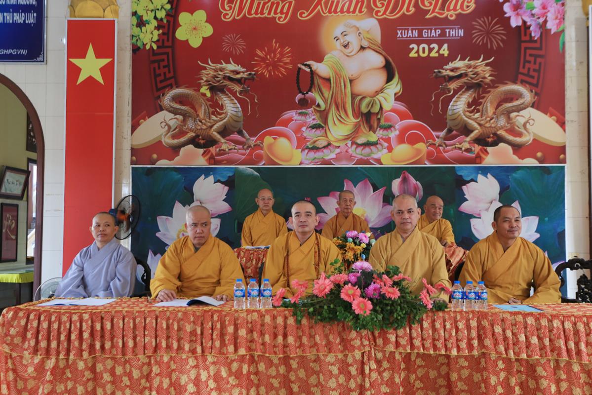 ĐĐ. Thích An Ngôn thông qua báo cáo tổng kết hoạt động Phật sự năm 2023 và dự kiến phương hướng hoạt động Phật sự năm 2024. Theo đó, Phật giáo huyện Bến Lức hiện nay gồm có 31 cơ sở: 30 cơ sở Tự Viện, 1 Điểm nhóm sinh hoạt tập trung Thọ Quang. Trong đó có 26 cơ sở thuộc Giáo Hội quản lý và 5 cơ sở đang xin gia nhập Giáo Hội với 56 Tăng ni đang tu học trên địa bàn huyện. Ban Trị Sự Giáo Hội Phật Giáo Việt Nam huyện Bến Lức đã đạt được những thành tựu nổi bật trong công tác Phật sự năm 2023, trong đó nổi bật là công tác từ thiện với tổng giá trị là: 3.744.405.000 đ (Ba tỷ bảy trăm bốn mươi bốn triệu bốn trăm lẻ năm ngàn đồng).