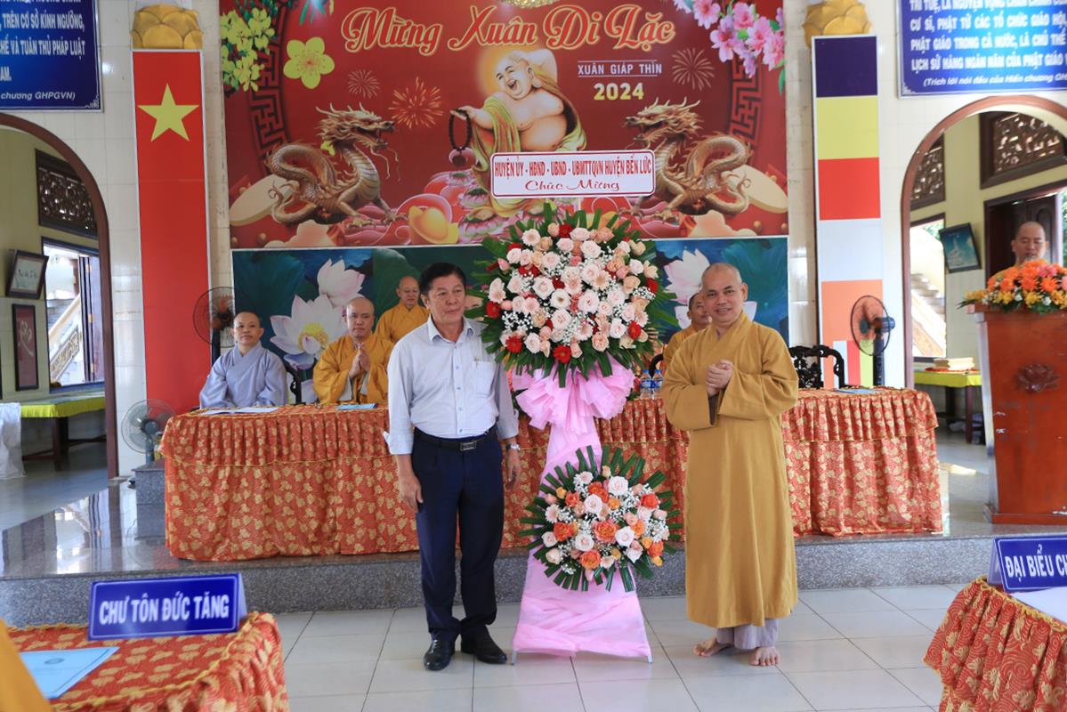 Ông nhấn mạnh, năm 2023 là năm kinh tế thế giới nói chung và trong nước nói riêng gặp nhiều khó, bên cạnh khó khăn đó thì huyện bến lức vẫn cố gắng vượt lên để đạt được những thành tích tốt đẹp về mọi mặt như an sinh xã hội, phong trào dân tộc, sản xuất kinh tế,… trong sự thành công ấy phần lớn nhờ vào sự góp sức của đồng bào tôn giáo, đồng bào Phật giáo.