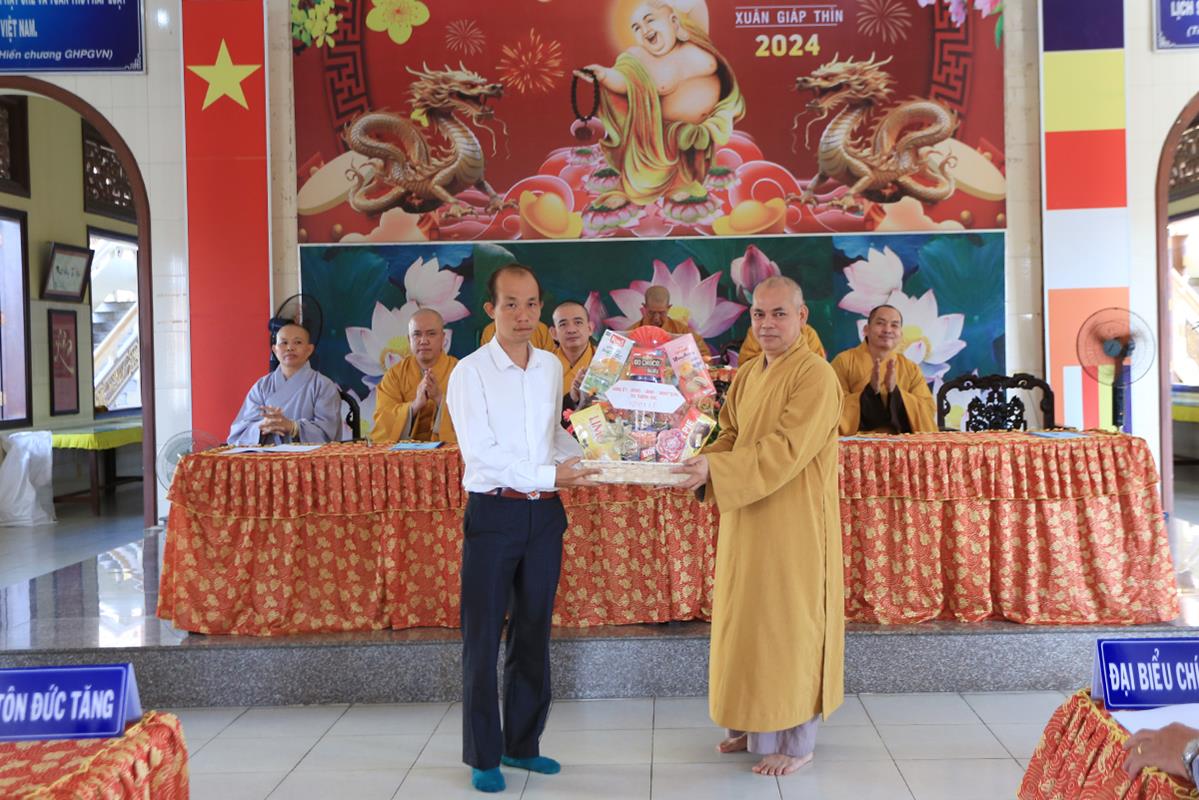Về phía chính quyền: ông Nguyễn Thành Nhân – Phó Chủ tịch UBND xã Bến Lức phát biểu. Ông gửi lời chúc mừng sức khỏe đến chư tôn Đức trước thềm năm mới giáp Thìn 2024.