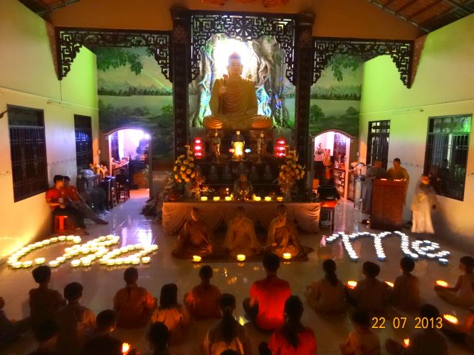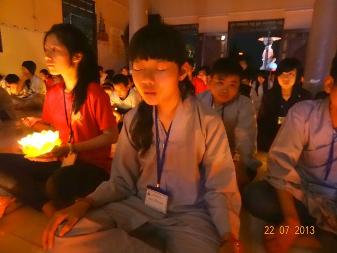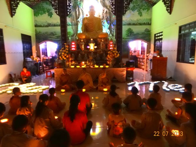 Đêm cuối cùng (22/7/2013) của khóa tu mùa hè lần II với chủ đề “Sống và Khát Vọng” tại chùa Khánh Ninh, huyện Cần Giuộc, tỉnh Long An, BTC khóa tu mùa hè đã long trọng tổ chức đêm đốt nến tri ân cho hơn 200 bạn trẻ tham dự.