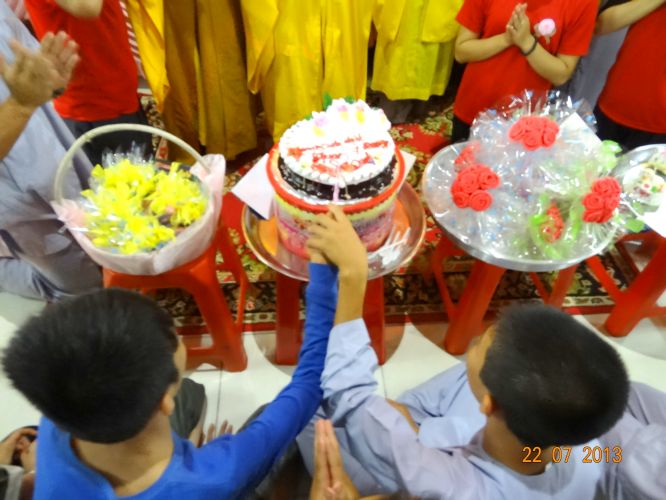 Sau lễ đốt nến tri ân, quý thầy cô đã tổ chức đêm sinh nhật cho các bạn tu sinh và các anh chị tình nguyện viên có ngày sinh nhật trong tháng.
