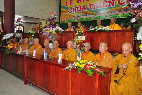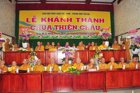Tham dự chứng minh Đại Lễ Lạc Thành, Ban tổ chức long trọng cung nghinh chư Tôn Giáo phẩm: HT Thích Viên Giác-Ủy viên ban TT HĐCM GHPGVN; HT Thích Thiện Nhơn-Chủ tịch HĐTS GHPGVN; HT Thích Thiện Pháp-Phó Chủ tịch Thường trực HĐTS GHPGVN, Trưởng ban Tăng sự Trung ương; HT Thích Thanh Nhiễu-Phó Chủ tịch Thường trực HĐTS GHPGVN, Phó Trưởng ban Thường trực Ban Tăng sự TW; HT Thích Giác Toàn-Phó Chủ tịch HĐTS GHPGVN, Phó Trưởng ban Thường trực Ban Giáo dục Tăng Ni TƯ; HT Thích Huệ Trí-Trưởng ban Pháp Chế Trung ương GHPGVN; HT Thích Quang Nhuận-Ủy viên HĐTS, Phó Trưởng ban Thường trực Ban Hoằng pháp TƯ, Phó Trưởng ban Trị sự GHPGNV tỉnh Thừa Thiên Huế; TT Thích Thiện Thống-Phó Tổng Thư ký kiêm Chánh Văn phòng 2 Trung ương GHPGVN; TT Thích Huệ Thông-Ủy viên Thư ký HĐTS, Phó Văn phòng 2 TƯ, Trưởng Ban Trị sự GHPGVN tỉnh Bình Dương; HT Thích Trung Hậu-Trưởng ban Văn Hóa TƯ GHPGVN; HT Thích Thiện Đức-Ủy viên TT HĐTS, Phó Ban pháp chế GHPGVN; HT Thích Tấn Đạt-UV TT HĐTS, Phó văn phòng 2 TƯ, Phó Trưởng ban TT Ban Hoằng pháp TƯ; HT Thích Giác Liêm-Ủy viên HĐTS, Phó văn phòng 2 TƯ GHPGVN; HT Thích Thanh Sơn-Chứng minh Ban Hoằng TƯ, Trưởng ban trị GHPGN quận 1, TP HCM; HT Thích Hải Ấn-Ủy viên TT HĐTS, Phó Trưởng ban TT Ban Văn Hóa TƯ; HT Thích Phước Toàn-Ủy viên ban Văn hóa TƯ GHPGVN; HT Thích Thiện Huệ-Chứng minh BTS GHPGVN tỉnh Long An; HT Thích Nhựt Tấn-UV HĐTS, Trưởng ban Trị sự GHPGVN tỉnh Bến Tre; HT Thích Huyền Thông-Phó Trưởng ban Thường trực BTS GHPGVN tỉnh Kiên Giang; TT Thích Thanh Giác-Ủy viên HĐTS, Phó Trưởng ban Thường trực Ban Hoằng pháp TƯ, Phó Trưởng Ban Trị GHPGVN TP Hải Phòng;TT Thích Chiếu Tạng-UV HĐTS, Phó Trưởng ban Hoằng pháp TƯ; TT Thích Đồng Nguyện-Phó Trưởng ban Hoằng pháp TƯ GHPGVN; TT Thích Chân Quang-Phó Trưởng ban Kinh tế Tài chánh TƯ GHPGVN; HT Thích Thiện Xuân-Trưởng ban Trị sự GHPGVN QUẬN Tân phúc- Tp. HCM; HT Thích Giác Hoa-Phó Ban Trị sự GHPGVN TP Cần Thơ; TT Thích Giác Trí-Phó Trưởng ban Hoằng pháp TƯ GHPGVN; HT Thích Minh Thiện-UV HĐTS, Phó Trưởng ban Hoằng pháp TƯ, Trưởng ban Trị sự GHPGVN tỉnh Long An, Trụ trì chùa Thiên Châu, Trưởng ban Tổ chức lễ khánh thành.