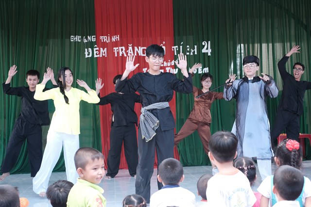 Ngay sau đó là các tiết mục văn nghệ được diễn ra trong sự thích thú theo dõi của các bạn nhỏ. Tiếc mục hấp dẫn nhất là kịch sự tích chú cuội ngồi gốc cây đa và bài nhảy bống bống bang bang của nhóm múa AJ.Crew, các bạn nhỏ chăm chú theo dõi không rời mắt.