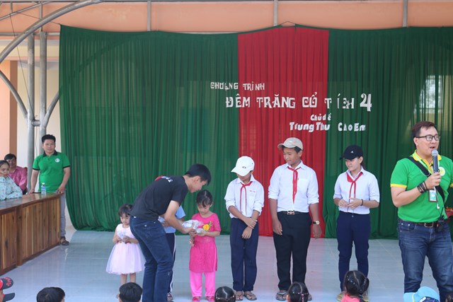 Để giúp đỡ các bạn nhỏ nơi đây có một cái tết Trung thu trọn vẹn hơn, BTC đã chuẩn bị những phần quà ý nghĩa, gồm: 10 phần quà đặc biệt cho các em nhỏ hiếu học vượt khó và 1 phần quà đặc biệt là chiếc xe đạp cho em nhỏ có hoàn cảnh khó khăn là học sinh giỏi ưu tú. Đây là chương trình trọng điểm trong năm nay của CLB, CLB Cỏ Bốn Lá đã trao tổng số 525 phần quà với tổng giá trị trên 15 triệu đồng.