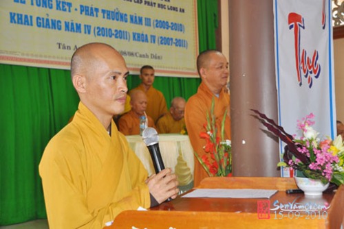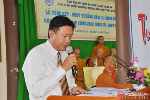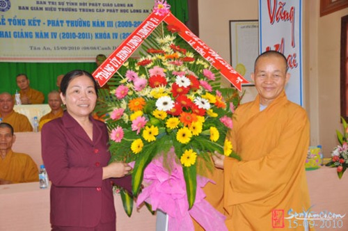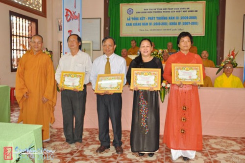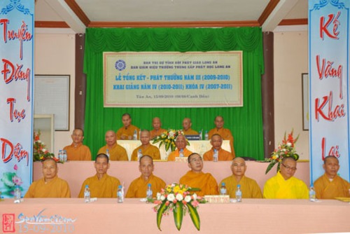 Chứng minh và tham dự có Hòa thượng Thích Đạt Đồng (Thành viên HĐCMGHPGVN, Cố vấn chứng minh BTS THPGLA), hòa thượng Thích Trung Hậu (UV HĐTS GHPGVN, Trưởng Ban Văn Hóa GHPGVN), hòa thượng Thích Thiện Thanh (UV HĐTS GHPGVN, Trưởng Ban Trị Sự THPG Long An); đại diện chính quyền có ông Lê Trường Cửu (Phó Ban Tôn Giáo – Sở Nội Vụ tỉnh Long An), bà Nguyễn Thị Tuyết (Phó Ban Dân Vận Tỉnh Ủy Long An) cùng quý Thầy, Cô trong Ban Giáo Thọ, quý Phật tử xa gần khoảng 300 vị tham dự.