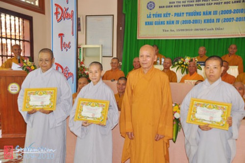 Theo báo cáo của Ban Giám Hiệu, chương trình đào tạo năm thứ III đã un đúc cho Tăng Ni sinh những kiến thức cơ bản và trọng tâm của Trường với 12 môn học nội điển (7 môn) và ngoại điển (5 môn) và chuyên đề ngoại khóa. Kết quả cuối năm thể hiện sự thành tựu khả quan mà Tăng Ni sinh đã đạt được trong một năm tinh tấn tu học. Năm thứ tư, năm cuối khóa, bên cạnh những môn học căn bản truyền thống (gồm 12 môn học cơ bản), Ban Giám Hiệu chú trọng những môn học mang tính định hướng tu học và hoằng pháp (gồm những chuyên đề đại cương về văn hóa, nghi lễ, hành chánh Giáo hội, tâm lý học, mỹ học, xã hội học …) nhằm rèn luyện, bồi dưỡng kiến thức và kỷ năng Phật sự cho Tăng Ni sinh, nếu vị nào về tham gia Phật sự tại địa phương sẽ có được những kiến thức Phật sự căn bản, nếu vị nào tiếp tục học ở các trường cao hơn sẽ có điều kiện thi tuyển.