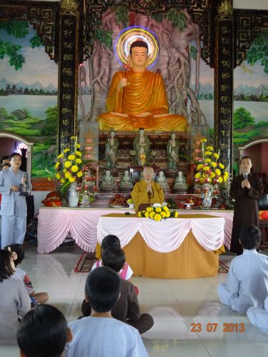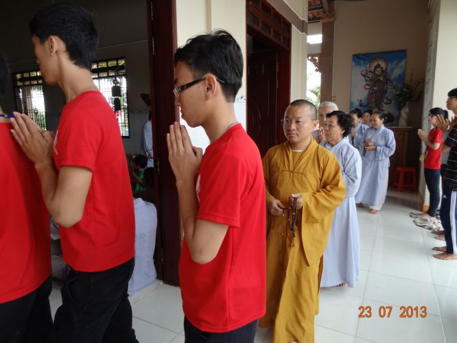 Sáng cuối cùng (23/7/2013) của khóa tu mùa hè lần II “Sống và Khát Vọng” được ĐĐ. Thích Thiện Chánh, ĐĐ. Thích Minh Thạnh, chư tôn đức trong hội Khai Tâm tổ chức cho hơn 200 bạn trẻ tại chùa Khánh Ninh, xã Phước Lâm, huyện Cần Giuộc, tỉnh Long An đã long trọng đón tiếp TT. Thích Nhật Từ, Trưởng ban Văn hóa GHPGVN TPHCM, phó viện trưởng HVPGVN tại TP.HCM, trụ trì chùa Giác Ngộ, TP.HCM đến khóa tu thuyết giảng.