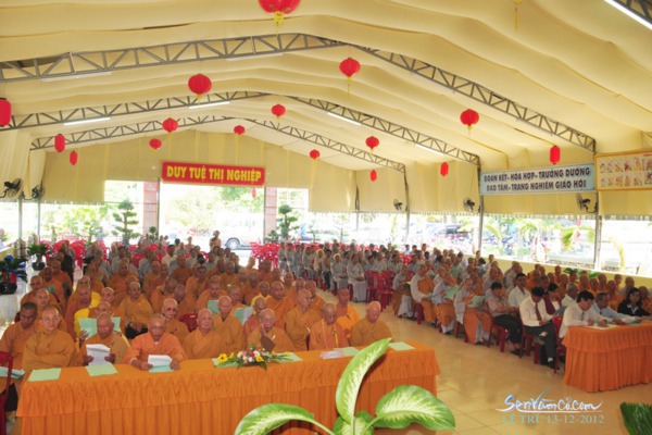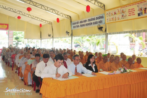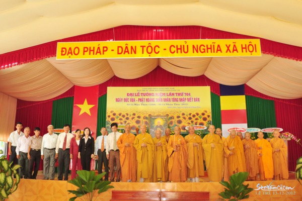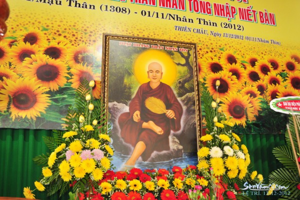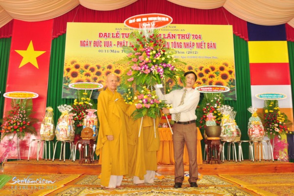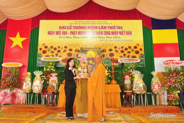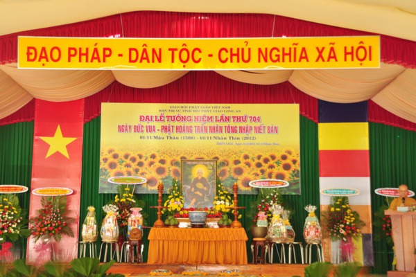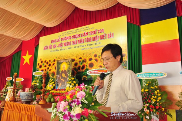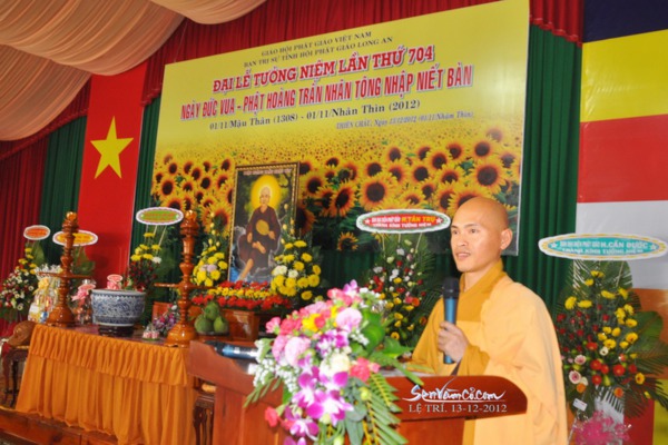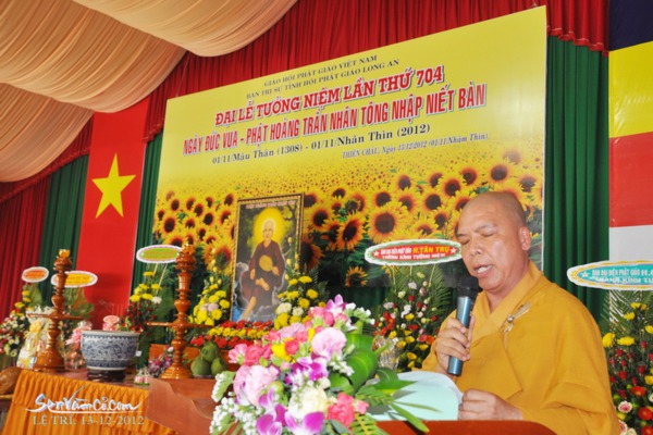 Hôm nay, ngày 13-12-2012, theo thông bạch của Trung ương GHPGVN, hòa vào niềm hân hoan của mọi người dân Việt trên khắp cả nước hướng đến tôn kính, tri ân đức vua Phật Hoàng Trần Nhân Tông, thể hiện tinh thần kế thừa và phát huy vai trò hộ quốc an dân của Phật giáo Việt Nam, Ban Trị sự Tỉnh hội Phật giáo Long An tổ chức trong thể Đại lễ tưởng niệm lần thứ 704 ngày Đức vua Phật Hoàng Trần Nhân Tông Nhập Niết bàn”.