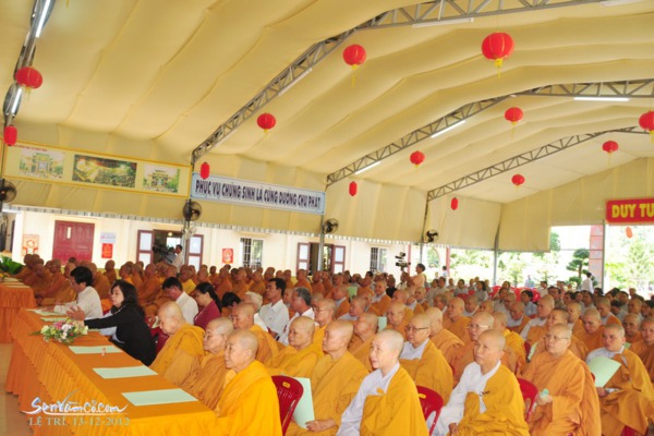 Đại diện khách quý chính quyền có ông Trương Văn Nam (Phó Chủ tịch TT UBMTTQVN tỉnh Long An), ông Trần Văn Bên (Phó GĐ Sở Nội vụ – Trưởng Ban Tôn giáo tỉnh Long An), bà Trương Thị Thu Hà (Phó CT UBND TP Tân An) và Chư Tôn đức Tăng Ni, Phật tử khoảng 400 vị.