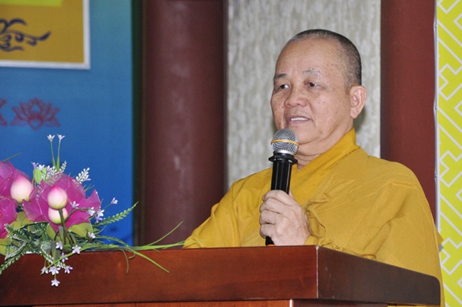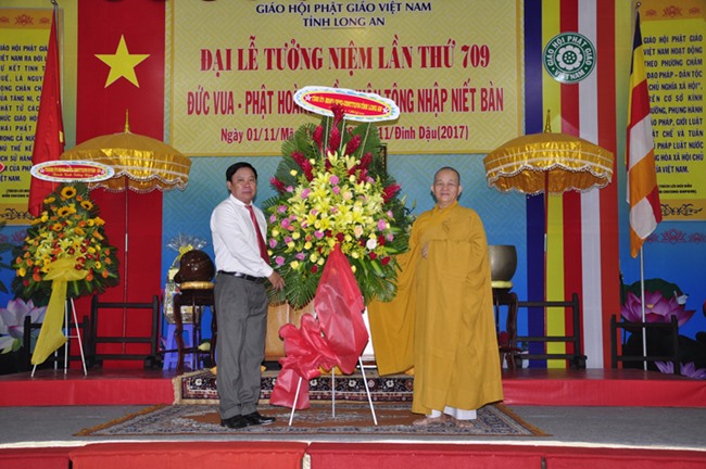Thích Minh Thiện- Thay mặt Thường trực Ban trị sự tỉnh nêu lên ý nghĩa Lễ tưởng niệm, đồng thời tuyên đọc Văn Tưởng niệm Đức vua – Phật Hoàng Trần Nhân Tông nhập Niết bàn của Giáo Hội Phật giáo Việt Nam và tỉnh Long An.