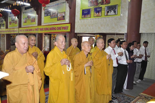 Chứng minh tham dự buổi lễ có HT. Thích Huệ Hồng- Chứng minh Ban trị sự GHPGVN tỉnh Long An; HT. Thích Minh Thiện- Uỷ viên HĐTSTƯ, Phó ban Hoằng pháp trung ương, Trưởng Ban trị sự GHPGVN tỉnh Long An;TT. Thích Quảng Tâm- UVHĐTSTƯ, Phó thường trực Ban trị sự GHPGVN tỉnh Long An; ĐĐ. Thích Lệ Trí – UVHĐTS, Phó Ban trị sự GHPGVN tỉnh Long An; ĐĐ. Thích Đức Hoàng- Phó BTS GHPGVN tỉnh Long An; ĐĐ. Thích Lệ Duyên- Chánh thư ký BTS. GHPGVN tỉnh Long An; HT. Thích Quảng Ý- Trưởng BTS GHPGVN liên huyện Tân Thạnh – Mộc Hoá – Kiến Tường- Vĩnh Hưng; HT. Thích Bửu Ứng- Trưởng Ban trị sự GHPGVN huyện Cần Đước; cùng Chư tôn đức Tăng Ni trong thường trực Ban trị sự tỉnh, huyện về tham dự.