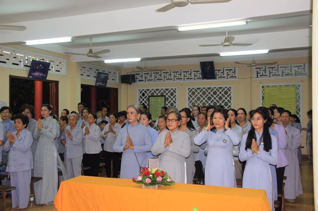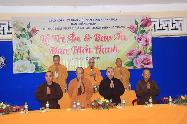 Lúc 19 giờ ngày 15.8.2018 tại hội trường văn phòng GHPGVN tỉnh Khánh Hòa, Chùa Sắc tứ Long Sơn, số 20 đường 23/10 Tp Nha Trang đã diễn ra Lễ Tri ân và Báo Ân do lớp học Phật pháp cư sĩ Áo Lam Nha Trang tổ chức.