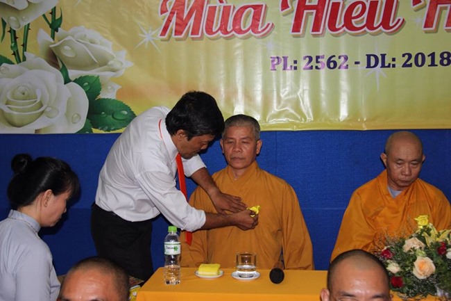Chứng minh có HT. Thích Nguyên Quang, Phó Trưởng BTS GHPG tỉnh Khánh Hòa; TT. Thích Thiện Tấn, phó B T S, Trưởng ban Kiểm soát GHPGVN tỉnh Khánh Hóa, TT. Thích Thông Huệ, trưởng Ban Hoằng pháp tỉnh, chư tôn đức Tăng, Ni Ban Hoằng pháp tỉnh; chư tôn đức giáo thọ và trên 100 học viên lớp cư sĩ Áo lam tham dự.