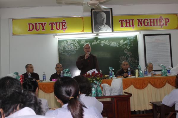 Ngày nhà giáo chính là một ngày tri ân đến các bậc thầy cô giáo, những người đã dày công giáo dưỡng cho Phật tử chúng ta biết được nẻo đường hướng thượng, để từ đó chúng ta áp dụng vào trong cuộc sống đem an vui hạnh phúc ngay hiện tại và tương lai” Đại Đức Thích Thiện Châu đã thay mặt Ban chủ nhiệm đã khai mạc buổi lễ.