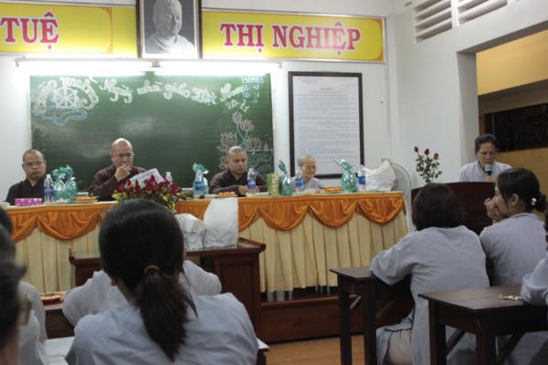 Cũng trong buổi lễ, những lời cảm tưởng tri ân đến bậc giáo thọ, những lẵng hoa tươi thắm, những tấm lòng của các học viên đã được dâng lên cúng dường chư tôn đức. thay mặt Chư tôn đức giáo thọ, TT. Thích Tắc Huê đã tán thán tinh thần  học Phật của Phật tử. Thượng tọa cũng mong mỏi rằng, tự bản thân mỗi người luôn cố gắng hoàn thiện trong tu học để có những kết quả tốt nhất cho mình. Buổi lễ kết thúc trong niềm hoan hỷ của toàn thể mọi người.