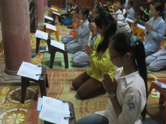 Mỗi tối thứ tư hàng tuần, gần 50 bạn trẻ CLB Thanh thiếu niên Phật tử được chư Tăng hướng dẫn học giáo lý. Trong gần 2 giờ đồng hồ, giây phút ngồi thiền, lạy Phật, đọc bài “Nhớ ơn” và học kinh Pháp cú, giáo lý Phật pháp căn bản đã giúp các em tưới tẩm tình yêu thương nhân loại, học hỏi Phật pháp để trở thành người con ngoan, trò giỏi, mầm non của Phật giáo.