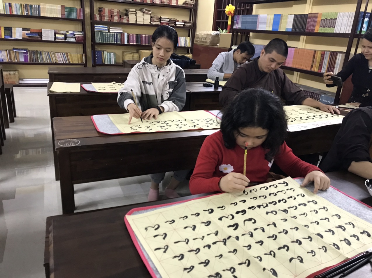 Tuổi tác là thứ có thể ngăn cách một vài môn học nhưng với thư pháp thì không. Dù bạn ở độ tuổi nào chỉ cần bạn có đam mê và sự kiên trì thì hoàn toàn có thể tham gia môn học này. Điều này đã được chứng minh ngay trong lớp học thư pháp tại chùa Long Hưng, khi các học viên tham gia lớp học ở đủ mọi độ tuổi.