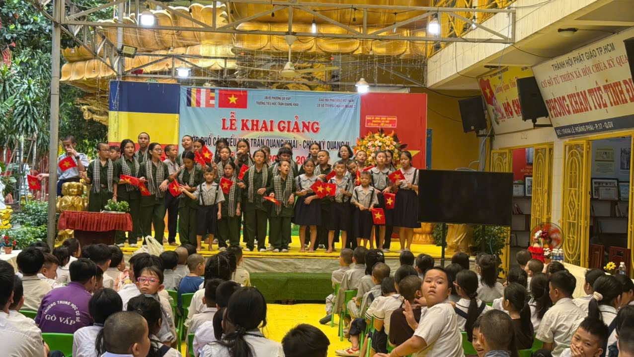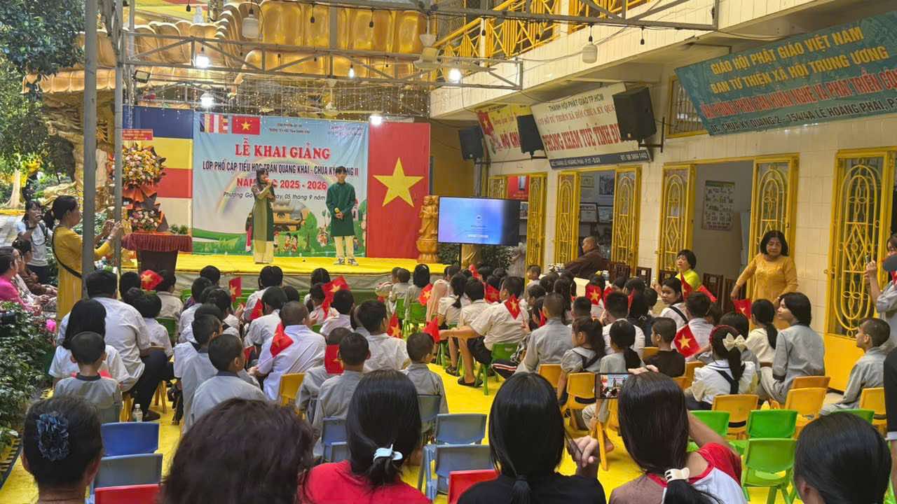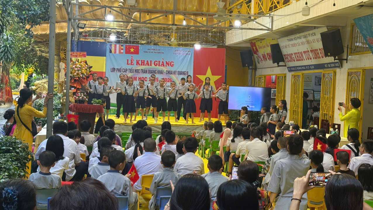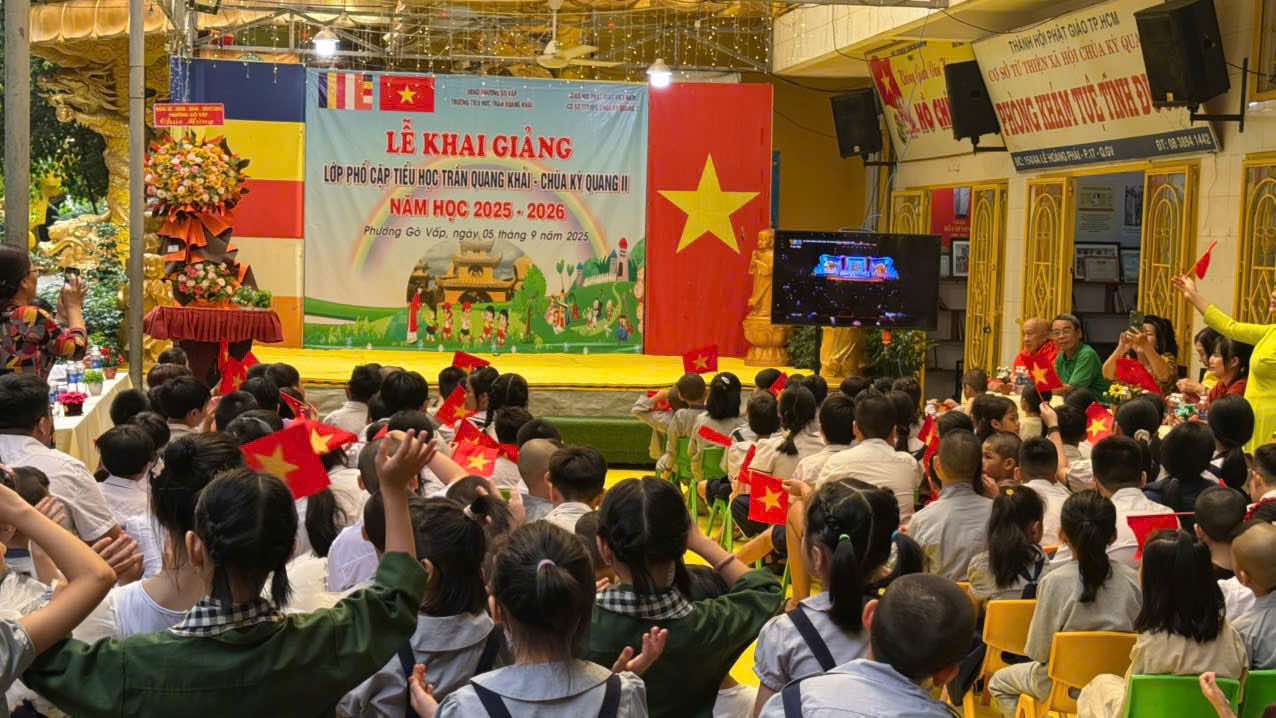 Hoà chung niềm vui cùng với 26 triệu học sinh, sinh viên trong cả nước, gần 100 học sinh tại lớp học tình thương Trường tiểu học Trần Quang Khải- chùa Kỳ Quang 2, P.Gò Vấp Thành phố Hồ Chí Minh đã tham dự lễ khai giảng năm học mới 2025-2026.