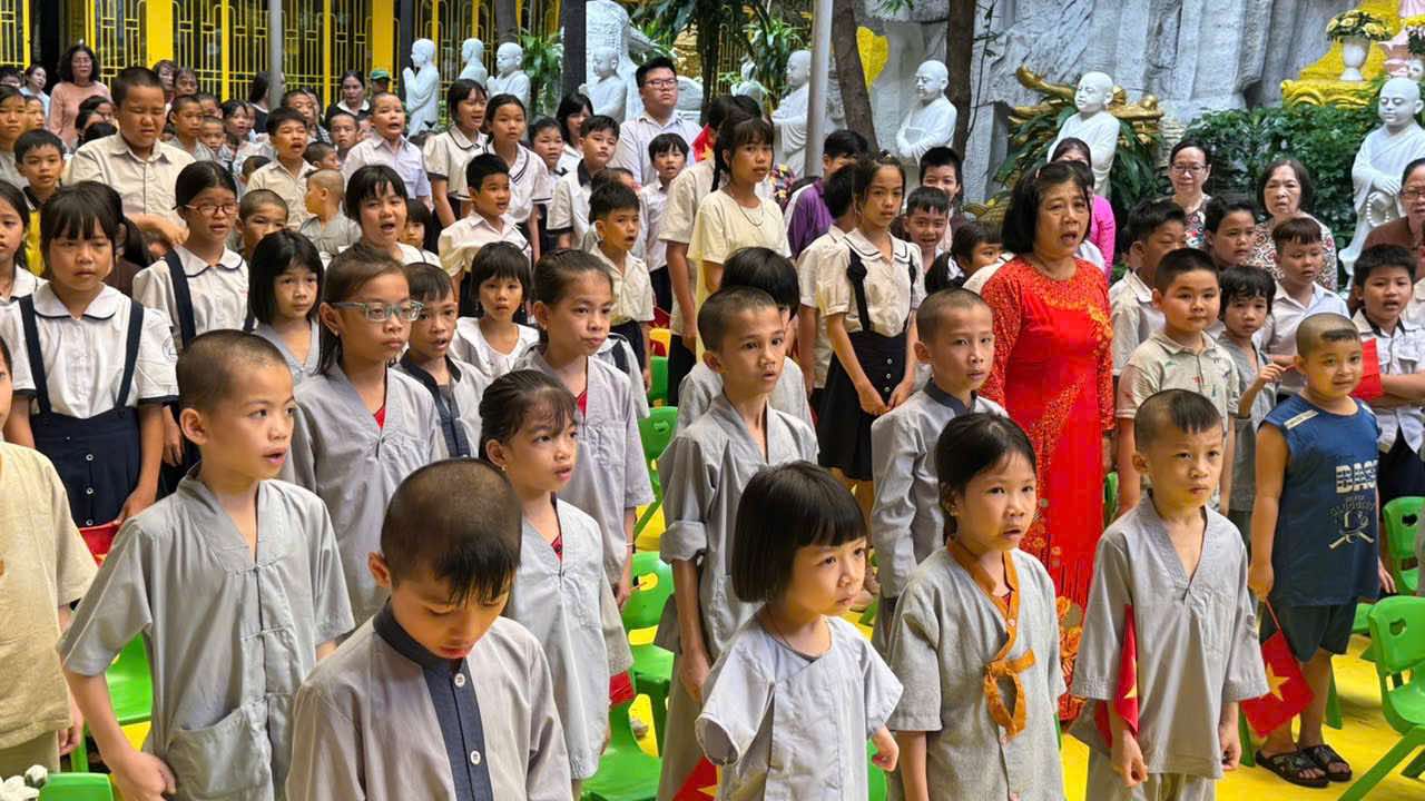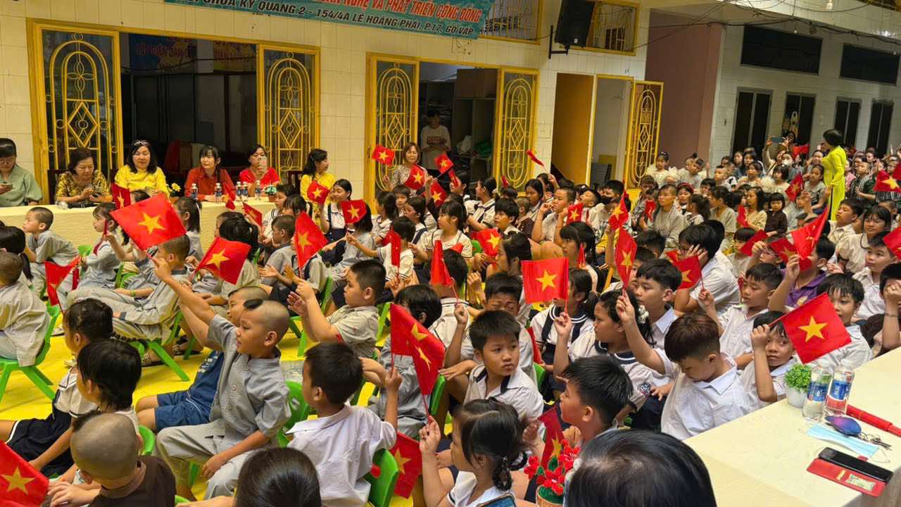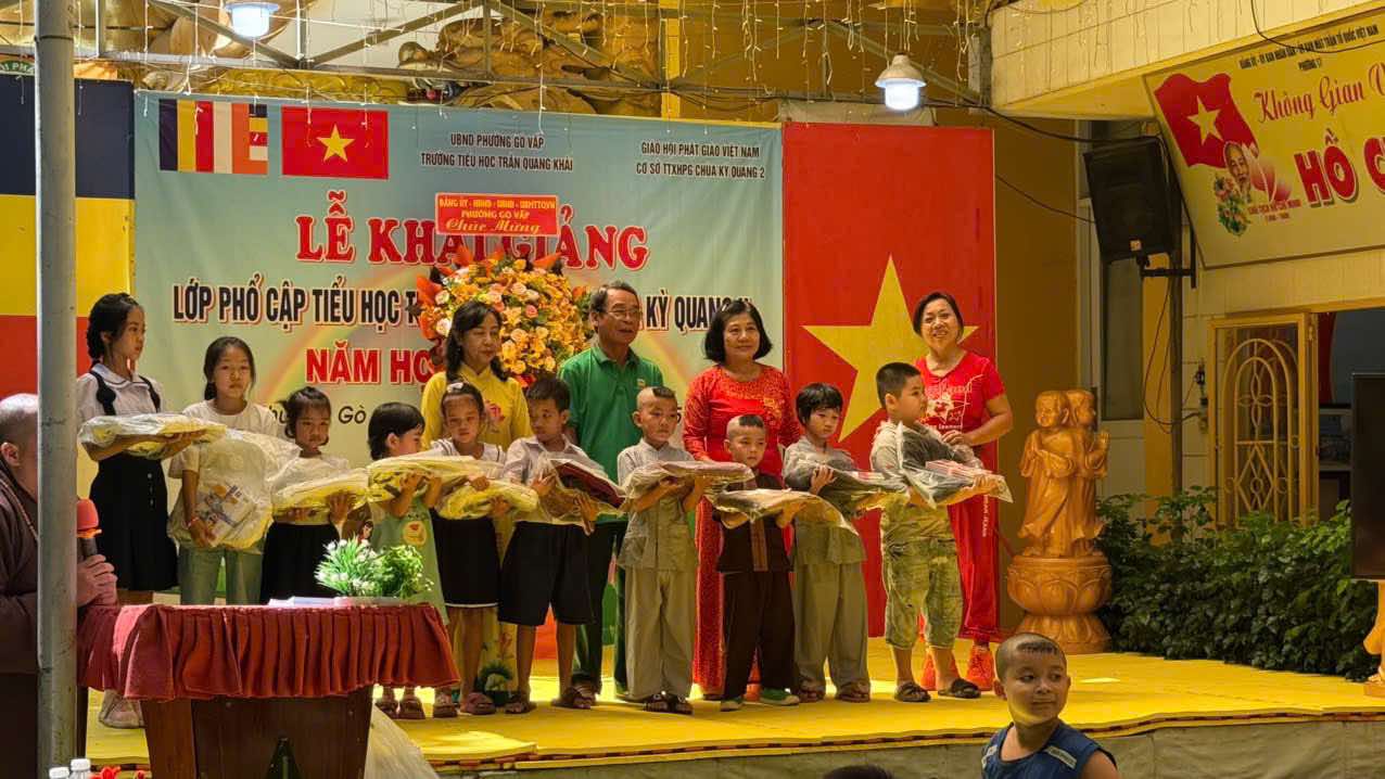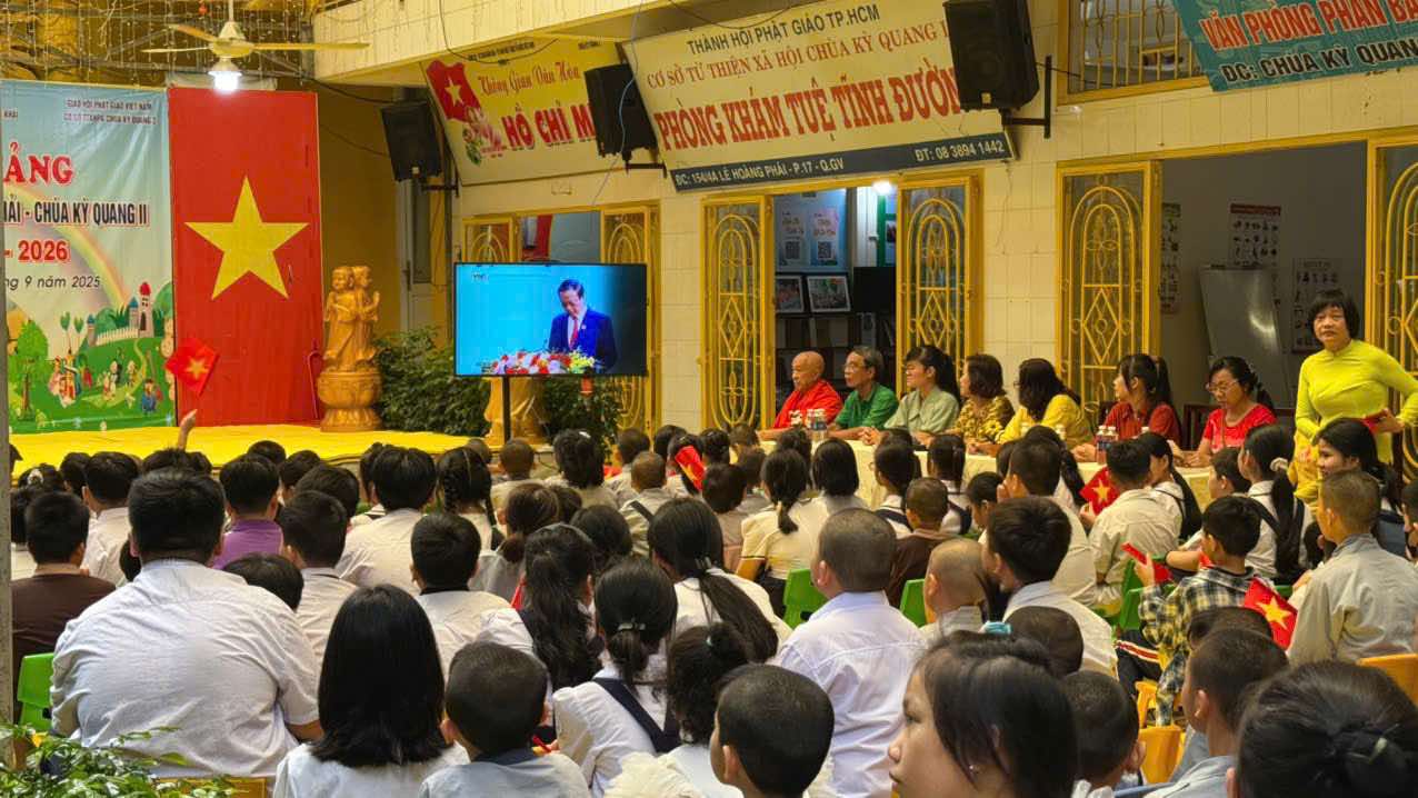 Hoà chung niềm vui cùng với 26 triệu học sinh, sinh viên trong cả nước, gần 100 học sinh tại lớp học tình thương Trường tiểu học Trần Quang Khải- chùa Kỳ Quang 2, P.Gò Vấp Thành phố Hồ Chí Minh đã tham dự lễ khai giảng năm học mới 2025-2026.