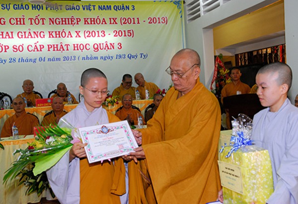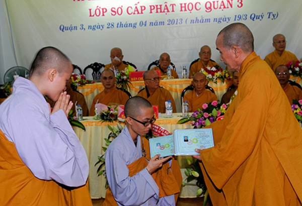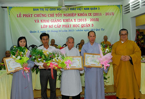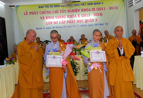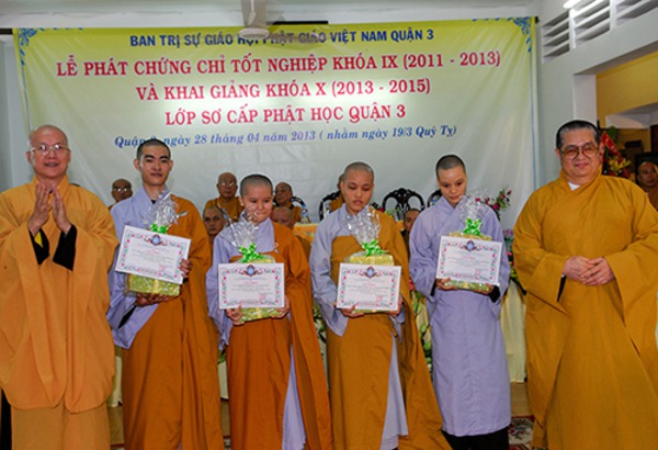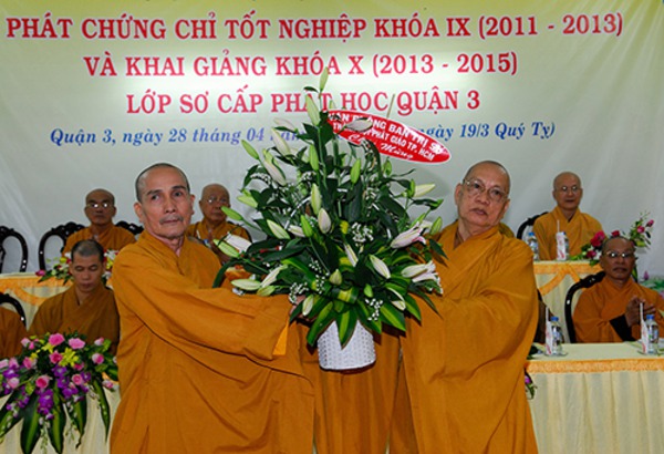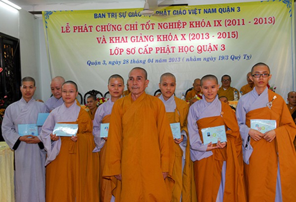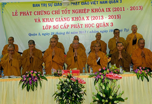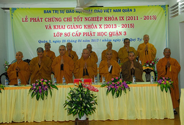 Quý Chư Tôn Đức Tăng, Ni Trụ trì các Tự viện chư vị Giáo Thọ sư, Ban giảng huấn cùng hơn 150 Tăng, Ni sinh khóa IX , X Lớp Sơ Cấp Phật học Q.3 , Quý Phật Ban Bảo Trợ lớp học đến tham dự.