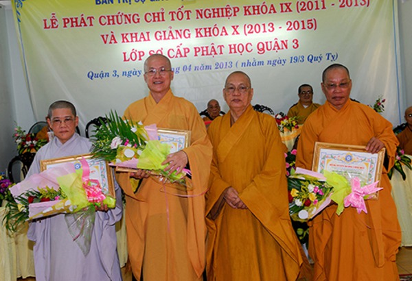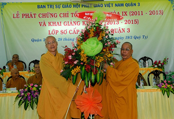 Quang lâm chứng minh và tham dự buổi lễ có sự hiện diện của HT. Thích Hiển Tu, Phó Thư ký HĐCM, GHPGVN, HT. Thích Thiện Tánh, Trưởng Ban Kiểm Soát HĐTS, GHPGVN, Phó Thường Trực BTS, GHPGVN Tp. HCM, HT. Thích Tịnh Hạnh, Ủy viên HĐTS, GHPGVN, Phó Ban Trị sự GHPGVN Tp. HCM, HT. Thích Minh Chơn, Ủy viên HĐTS, GHPGVN, Phó Ban Trị sư kiêm Trưởng Ban Hoằng Pháp GHPGVN Tp. HCM, HT. Thích Minh Hiền, Ủy Ban Trị sự GHPGVN TP. HCM, Trưởng Ban Trị sự GHPGVN Q.3, Chủ Nhiệm Lớp Sơ Cấp Phật học Q.3, HT. Thích Giác Liêm, Ủy viên HĐTS, GHPGVN, HT. Thích Nguyên Thiện, Ủy viên Ban Hoằng Pháp TƯ GHPGVN, HT. Thích Thanh Vân, Phó Ban Thường Trực Ban Trị Sự GHPGVN Q.3. TT. Thích Chơn Không, Phó Ban kiêm Chánh Thư Ký Ban Hướng dẫn Phật tử TƯ, GHPGVN, TT. Thích Thiện Quý, Phó Thư Ký Kiêm Chánh Văn BTS, GHPGVN TP. HCM, ĐĐ. Thích Minh Thành Chánh Văn Phòng Trường Cao, Trung Phật học TP. HCM, ĐĐ. Thích Thiện Châu Chánh Thư Ký Ban Trị sự GHPGVN Q.3, Ni trưởng Thích Nữ Huệ Từ, Ủy viên Thường Trực HĐTS, GHPGVN.