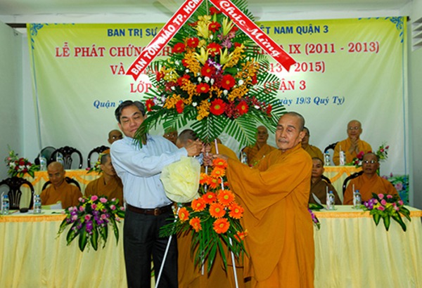 Phía Chính Quyền: Có Ông Lê Hoàng Vân, Trưởng Phòng Phật giáo Ban Tôn Giáo TP. HCM, Bà Lưu Thị Đính, phó Chủ tịch UBMTTQ Q.3, Ông Nguyễn Gia Thịnh chuyên viên Phòng Nội Vụ Q.3. Ông Lê Anh Tuấn Kiệt, Phó Chủ tịch UBND P.2, cùng quý vị đại diện các cấp Chính Quyền, Mặt trận các cấp đến tham dự chúc mừng buổi lễ.