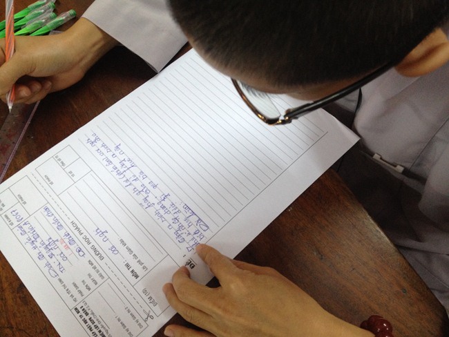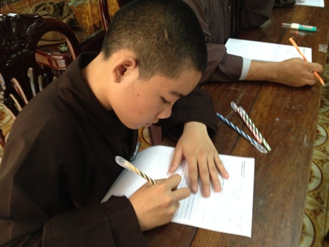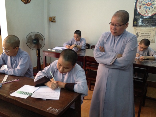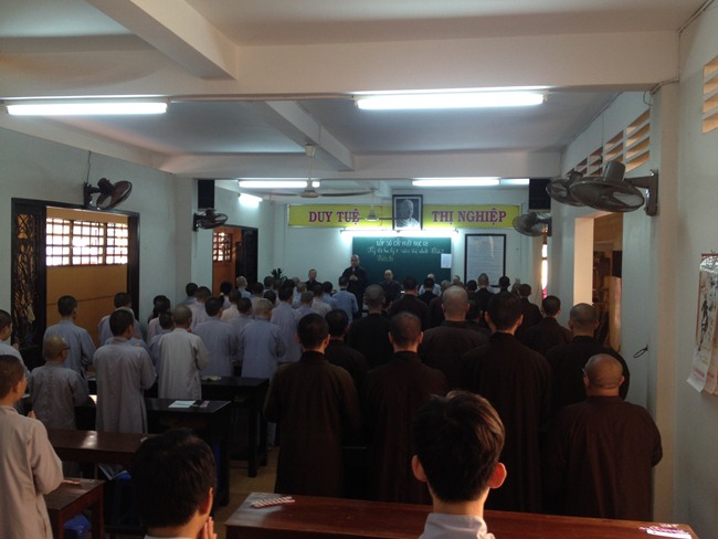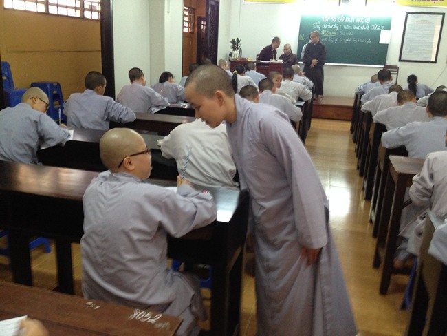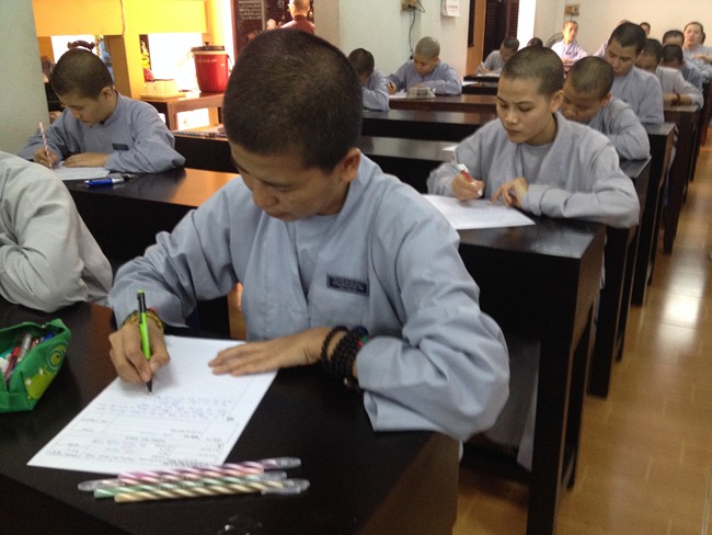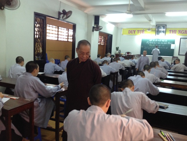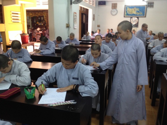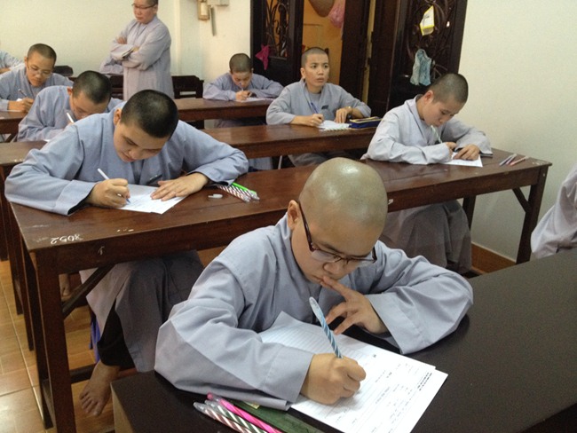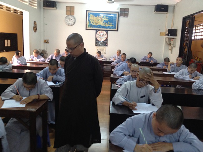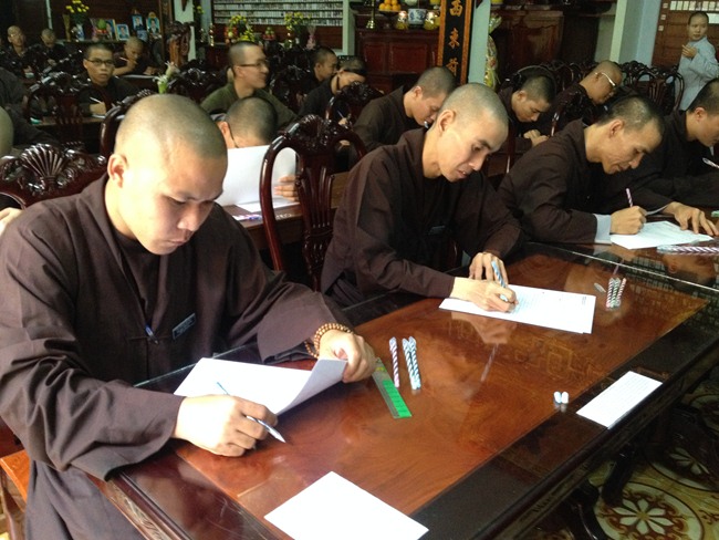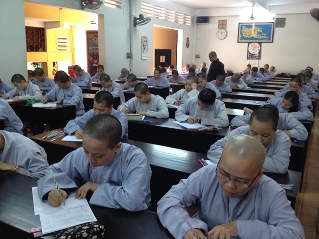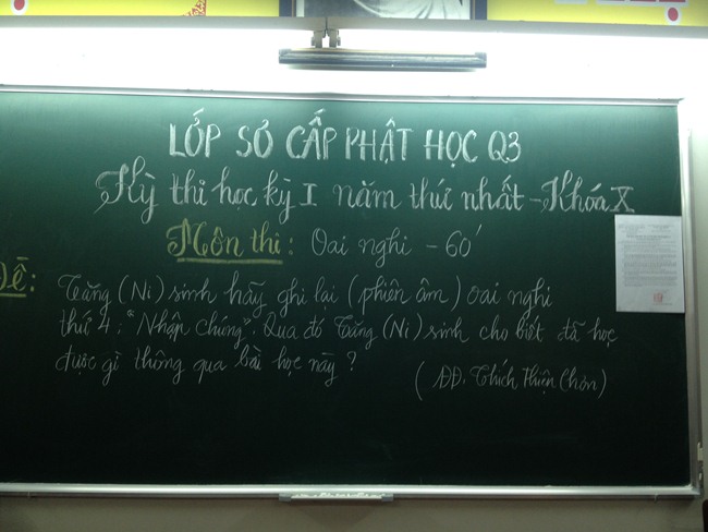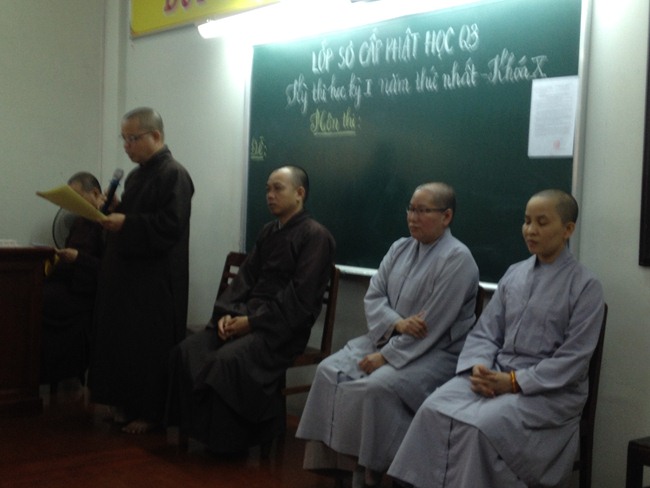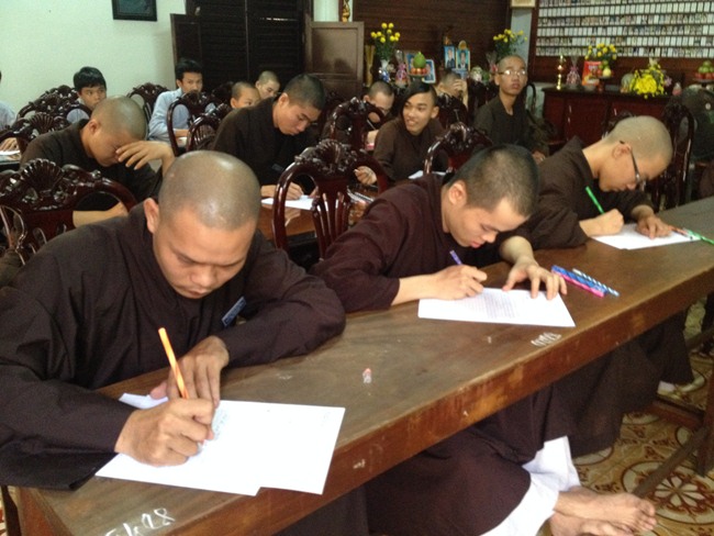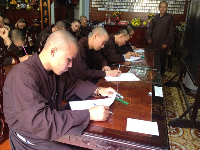 Môn thi học kỳ 1 là ” Oai Nghi” Thời gian làm bài là 60 phút. Được biết, kỳ thi này được chia ra 2 khu vực để làm bài: Tăng – Ni riêng; tổng số tham dự 93 Tăng Ni sinh; trong đó: Tăng 40, Ni 53.