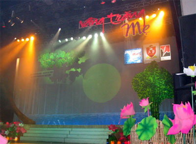 Sân khấu năm nay với gam màu nhẹ nhàng, phong màn là hình ảnh quê hương thu nhỏ của những cây cao, cánh diều và chiếc võng mùa thu – rất gần và bình dị, bình dị như chính nhân cách của người Phụ nữ việt