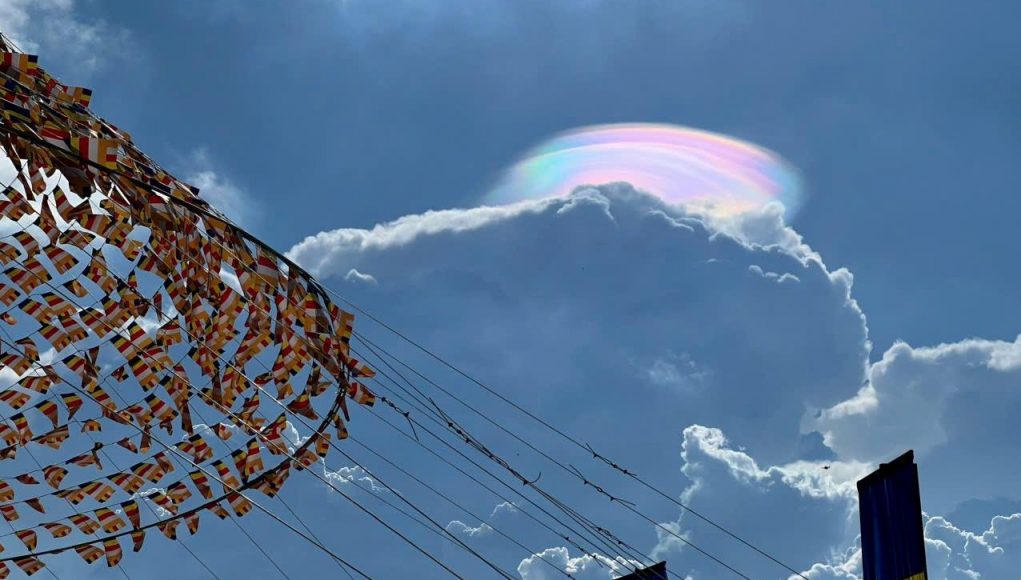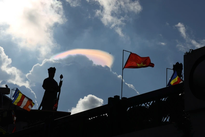 Chiều 8-5, trên bầu trời đỉnh núi Bà Đen tỉnh Tây Ninh xuất hiện vầng mây ngũ sắc sau khi lễ cung thỉnh và tôn trí xá lợi Đức Phật – Bảo vật Ấn Độ diễn ra tại đây.