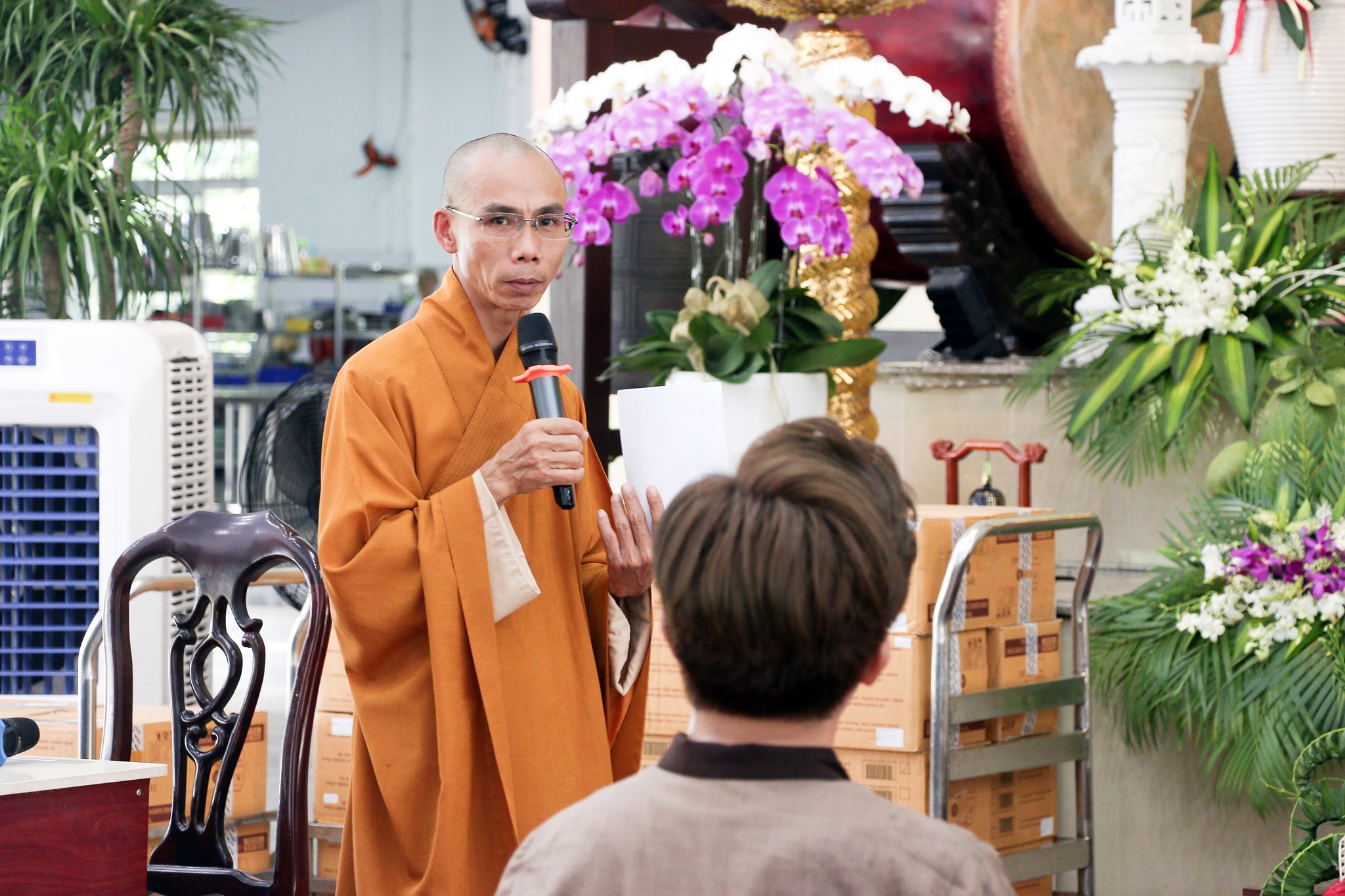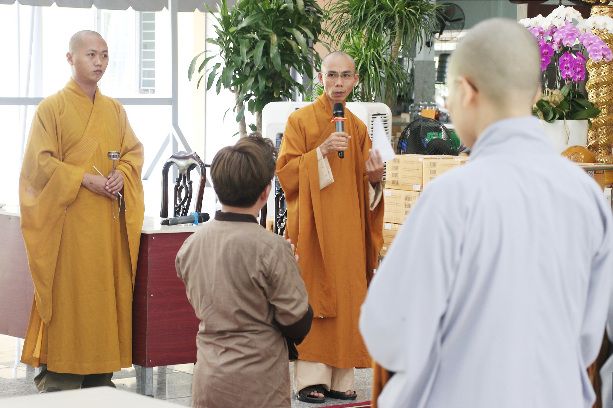 Đại diện Phái đoàn Tài khoản An vui, MC. Đại Nghĩa , pháp danh: Thiện Đạt Bảo và các thành viên đến đỉnh lễ Tam bảo và dâng số tịnh tài (cả quy đổi ngoại tệ ) là: 458.626.000₫; tịnh vật gồm 40 thùng sữa tắm, (mỗi thùng 24 chai), tất cả là 960 chai sữa tắm cúng dường cho quý Tăng Ni đang an cư tu học tại đây.