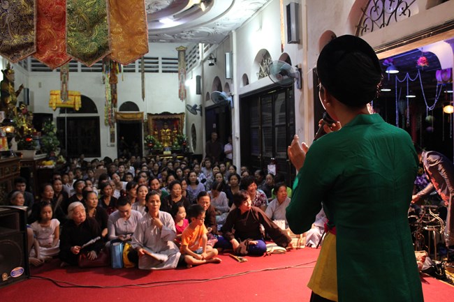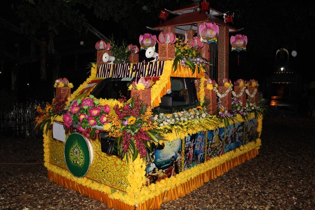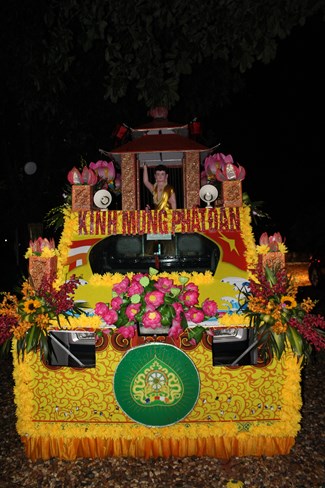 Trước khi buổi lễ được bắt đầu, trời nổi mưa gió rất to, khiến cho không khí trở nên mát mẻ, trong lành, lòng người như càng dịu lại đi sau cả ngày dài nắng gắt. Những Phật tử Tổ đình Trung Hậu đã thành kính dâng lên cúng dường Tam Bảo những lời ca tiếng hát đầy hân hoan, đầy tự hào ca ngợi Đức Thế Tôn – ca ngợi cuộc đời vĩ đại của một Bậc Giác Ngộ toàn năng toàn trí đức nhân dịp đản sinh của Ngài.