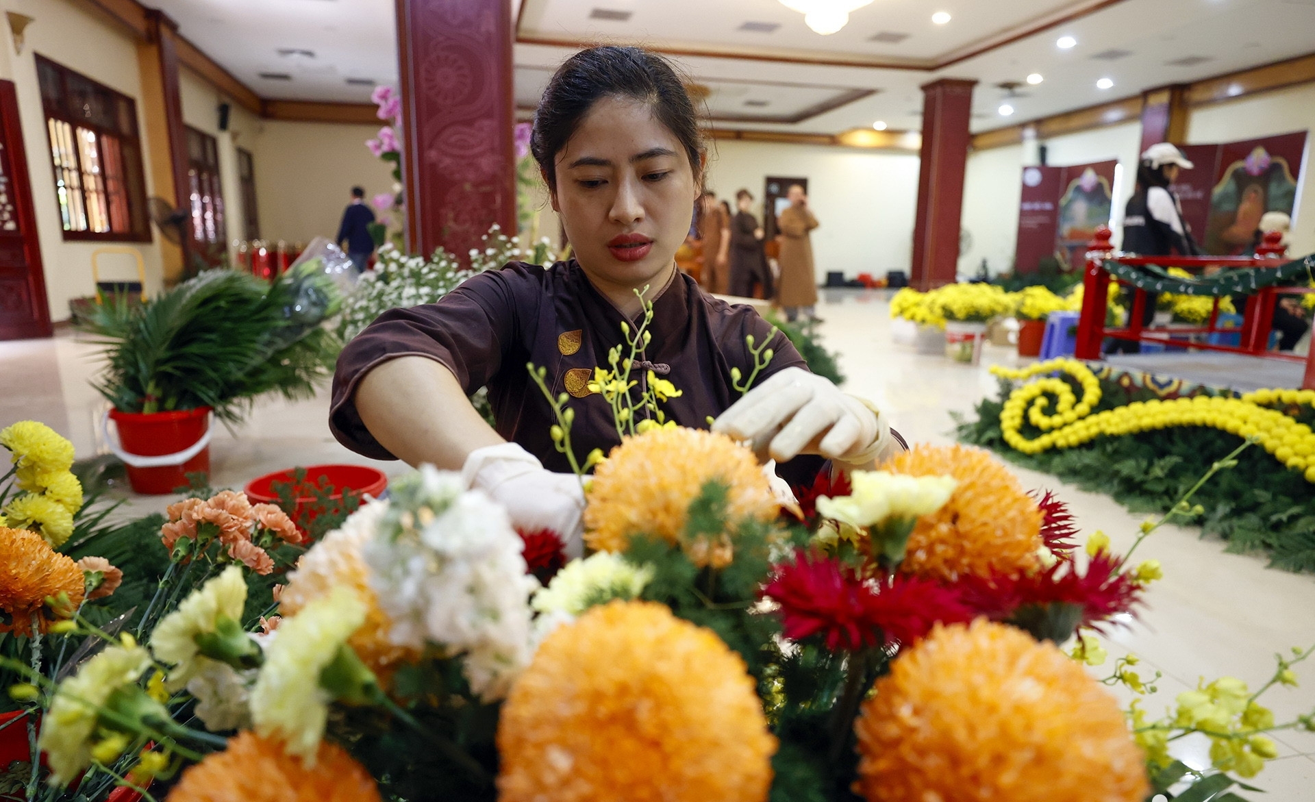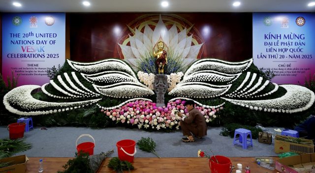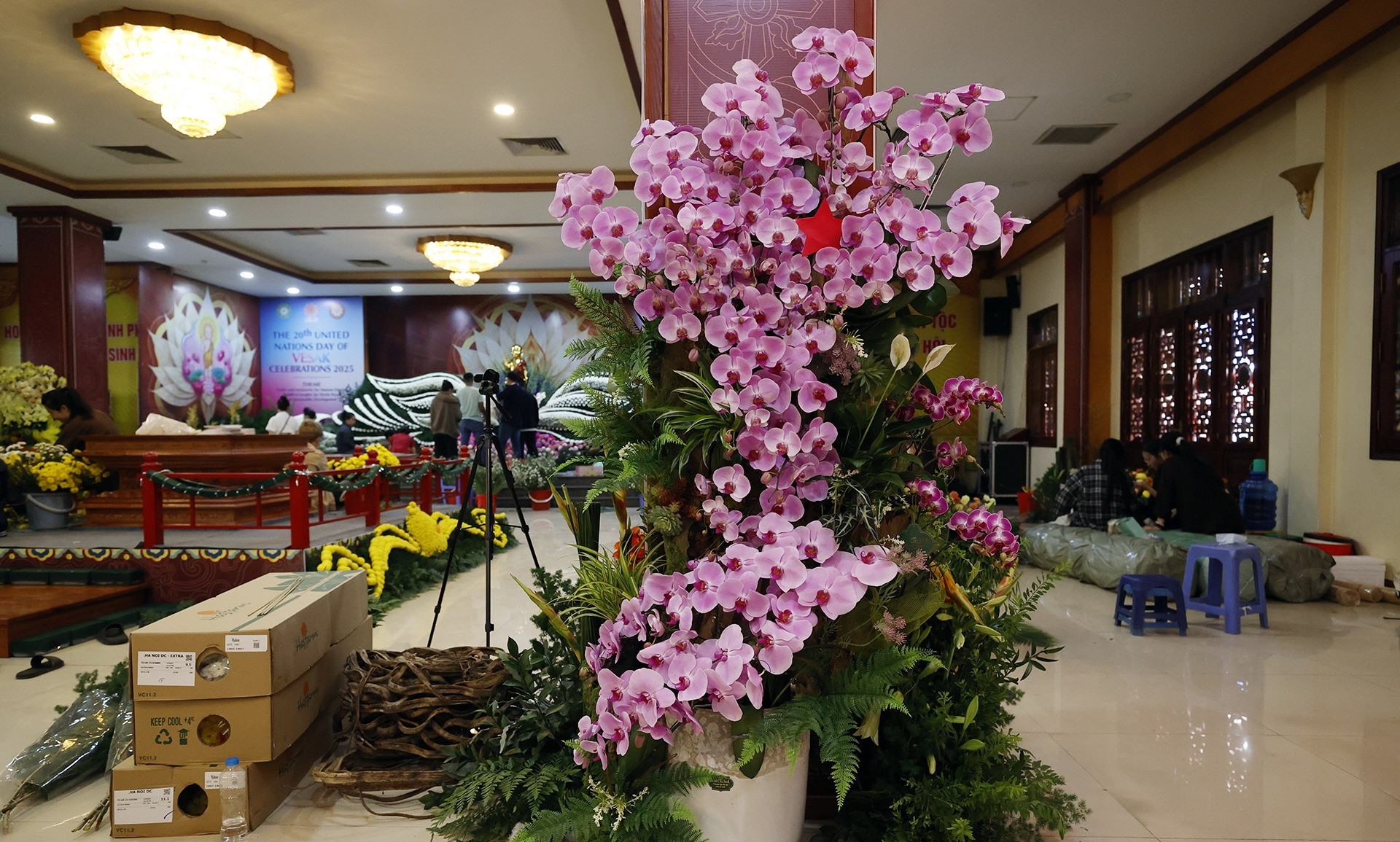 Nhóm của anh Dễ gồm 10 người, sau khi làm sản phẩm hoa cho sự kiện ở Thiền viện Trúc Lâm Phương Nam – Cần Thơ, đã có mặt tại chùa Quán Sứ và bắt tay ngay vào công việc sáng tạo các mô hình hoa từ tối 11/5.