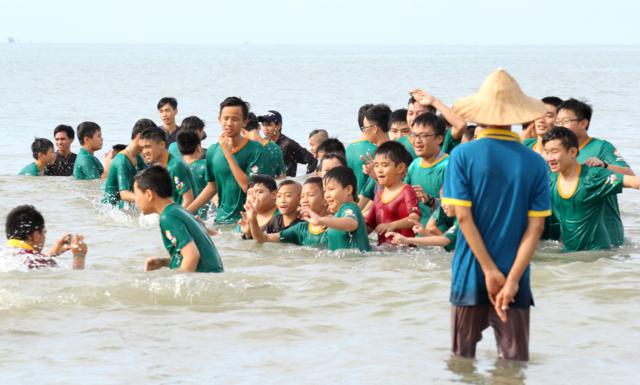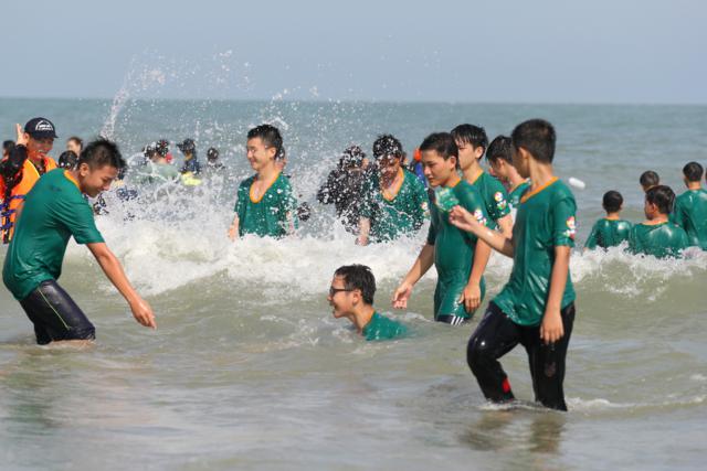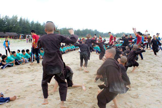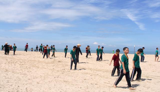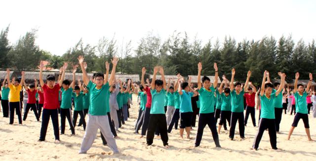 Tiếp đó, các em tập khí công và tham gia cuộc thi các trò chơi vận động trên biển. Chính những buổi học ngoại khóa này làm tăng thêm hứng thú học tập cho các em, giúp các em tự rèn kỹ năng sống cho bản thân. Qua đó dạy cho các em biết xử lý những tình huống khó khăn như: tập chịu đựng nắng gió sóng nước, tập nhanh nhẹn, tháo vát, v.v…Ngoài ra, khi được tiếp xúc với môi trường biển, các em sẽ quen với biển cả, yêu thiên nhiên, yêu môi trường hơn.