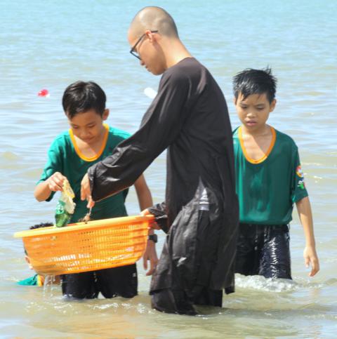 Trong khoá tu thiền biển này, các em còn được tham gia làm sạch môi trường vì một thế giới không rác. TT Thích Chân Quang đã phát động phong trào nhặt rác làm sạch môi trường cho tất cả Đạo tràng và Chúng thanh niên Phật tử Phật Quang đồng thực hiện theo phương châm: