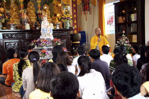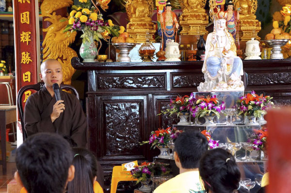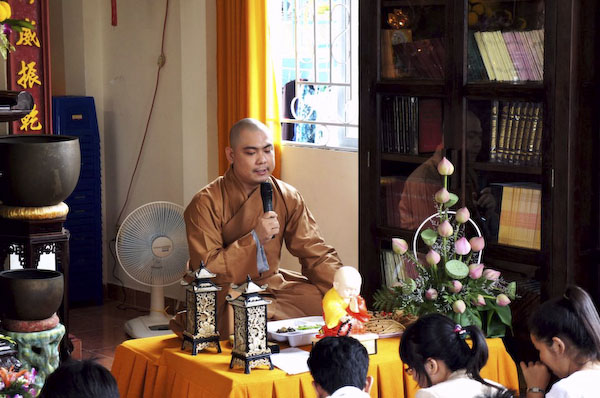 Đầu giờ chiều là phần pháp thoại do ĐĐ. Thích Lệ Minh – Trưởng ban tổ chức khóa tu thuyết giảng với chủ đề : “CÁCH THỨ HỘ NIỆM KHI LÂM CHUNG + PHƯƠNG PHÁP TỔ CHỨC LỄ TANG THEO NGHI THỨC PHẬT GIÁO”. Thông qua buổi giảng, đại chúng đã hiểu thêm nhiều về sự chuẩn bị cho việc sinh thuận tử an và tiến trình tái sinh được tốt đẹp.