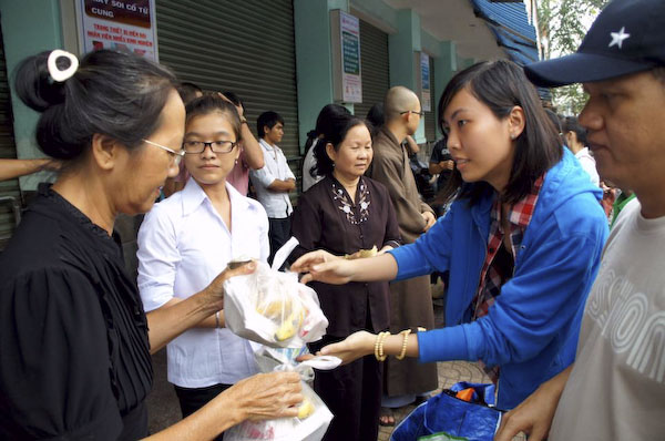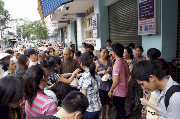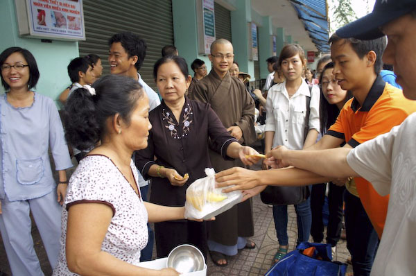 Kết thúc chương trình là phần phát 300 phần cơm chay cho bệnh nhân nghèo tại Bệnh viện An Bình do ĐĐ. Thích Lệ Bình hướng dẫn.