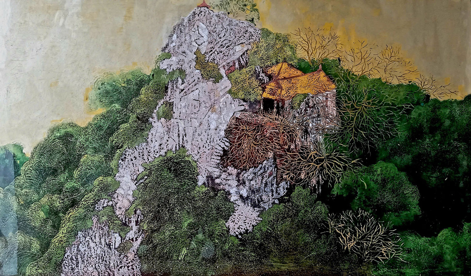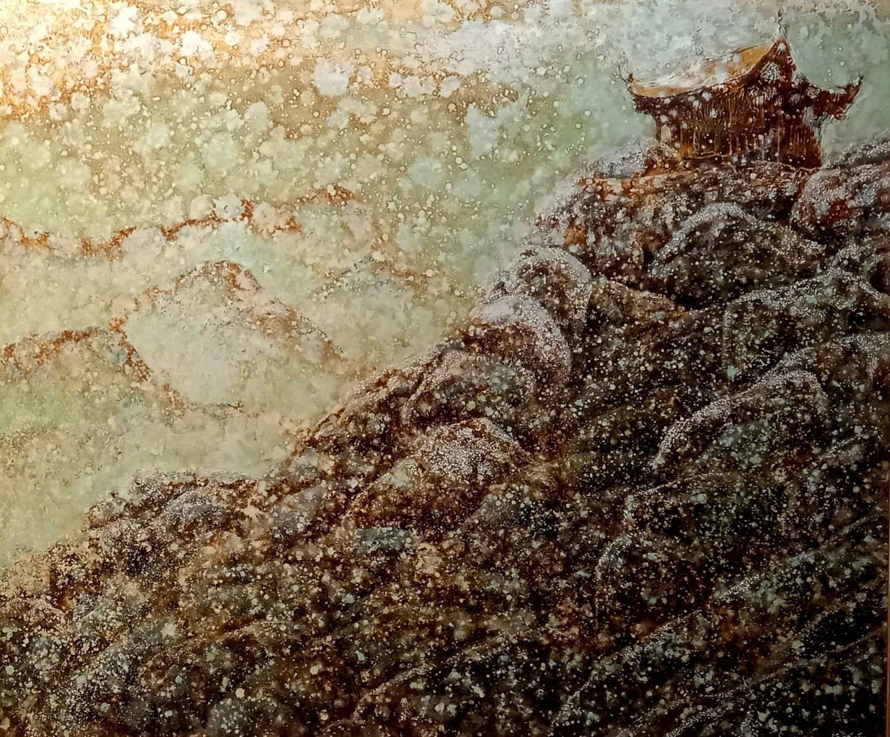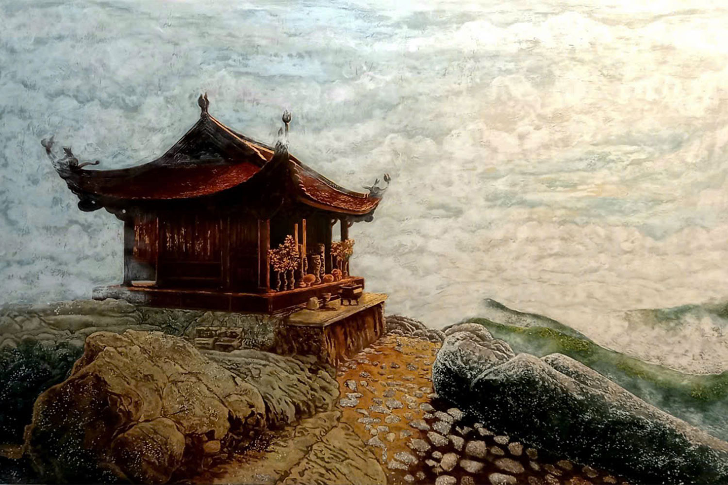 Tác phẩm “Trên đỉnh núi thiêng” (Lê Bá Cầu).
