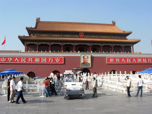 Tôi được thầy Minh Thuận dẫn đi thăm Quảng trường Thiên An Môn, một công trình mà trước đây chỉ nhìn thấy qua phim ảnh. Chiếm một vị trí bề thế giữa lòng thủ đô, Thiên An Môn được xây dựng vào đời nhà Thanh (năm 1417) với diện tích khoảng 440.000m2. Giữa Quảng trường là bia tưởng niệm và Lăng Chủ tịch Mao Trạch Đông, dọc theo là Viện Bảo tàng Quốc gia Trung Quốc. Đại lộ Trường An nằm giữa Thiên An Môn, nơi tổ chức các cuộc diễu hành lớn và quần thể khu hành chánh của Chính phủ Trung Quốc.