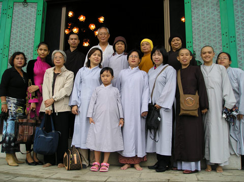 Tháp tùng cùng ni trưởng Trưởng môn phái Phật giáo Liên Tông Tịnh Độ Non Bồng có: ni sư TN Kim Sơn – giáo thọ Trường Sơ – Trung cấp Phật học tỉnh Đồng Nai, ni sư TN Diệu Tường – trụ trì chùa Bửu Quang, Q8, TP HCM, đại đức Thích Minh Trí – trụ trì chùa Phúc Lâm, Biên Hòa, sư cô TN Hương Nhũ – Tiến sỹ Phật học, giảng viên Học viện Phật giáo Việt Nam tại TP HCM, sư cô TN Vạn Hạnh – ni chúng Quan Âm Tu Viện, Biên Hòa và 12 phật tử.