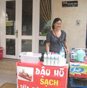 Tôi trở thành khách quen của chị, nhưng không phải lúc nào tới hàng chị cũng mua được, vì khoảng 10h00 sáng là chị hết hàng. Vào ngày đầu và giữa tháng âm lịch thì sau 9h00 là hết đậu. Có hôm không phải là ngày tuần rằm mà trên 8h00 khách đến mua cũng không còn. Những người muốn mua chục miếng trở lên phải điện thoại trước. Phần nhiều chị phải dậy từ 3h00 sáng để chuẩn bị làm đậu. Với cái cười tươi tắn và vui vẻ của gái quê nhãn lồng Hưng Yên, lại thêm nhiệt tình, nhanh nhẹn là những nét mà chị đã khiến khách luôn nhớ đến hàng của chị. Có người nói đùa, đàn ông mua đậu hũ của hàng này về thì lúc nào cũng được vợ khen trở lên. Rất nhiều thanh niên ghe vào mua đậu và sữa đậu nành mang theo để uống.