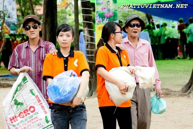 Những nhà hảo tâm thì về chùa bằng những tấm lòng vàng khi đem đến những món quà tình thương để chia sẻ với những mảnh đời bất hạnh.